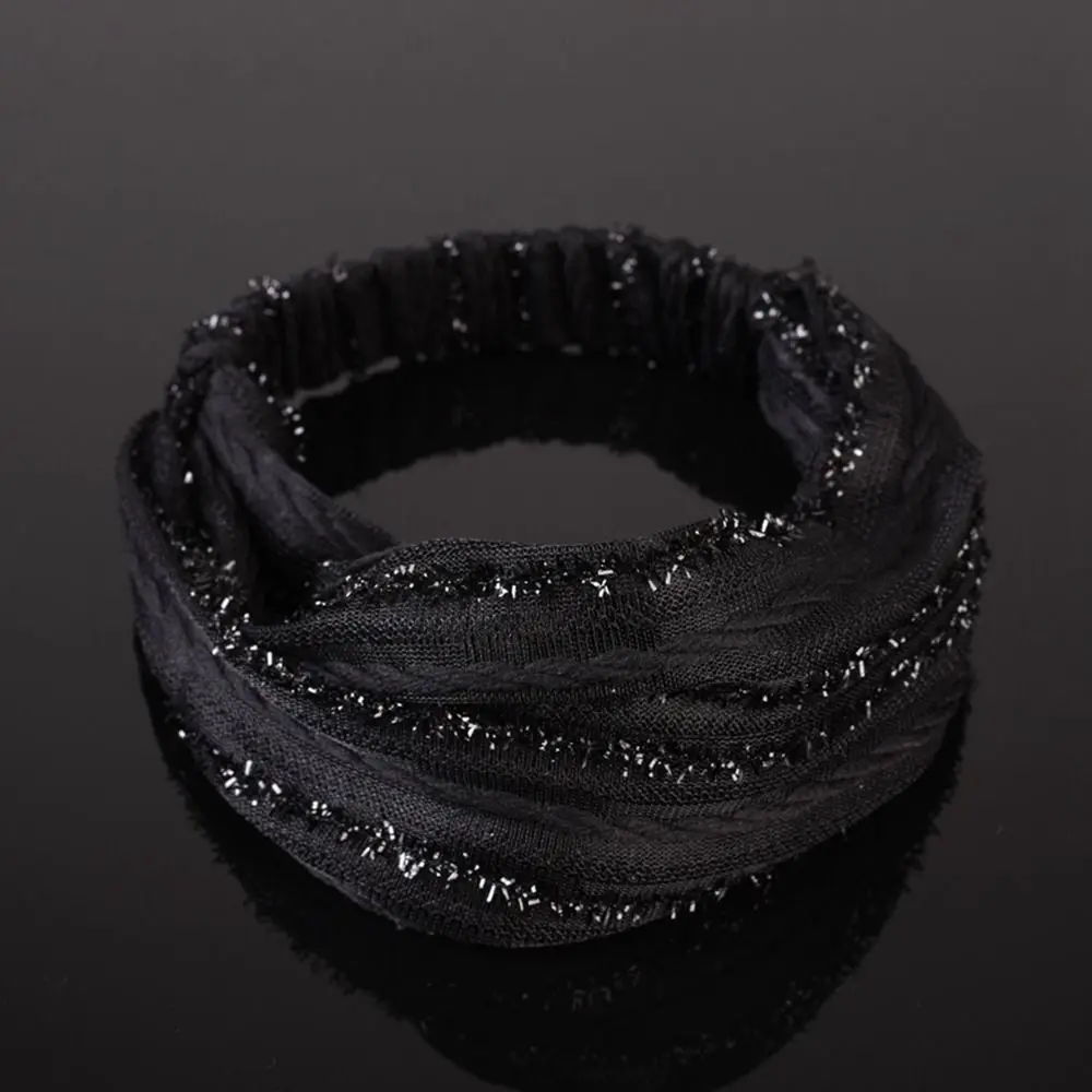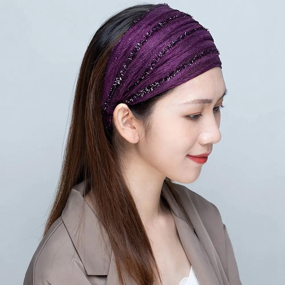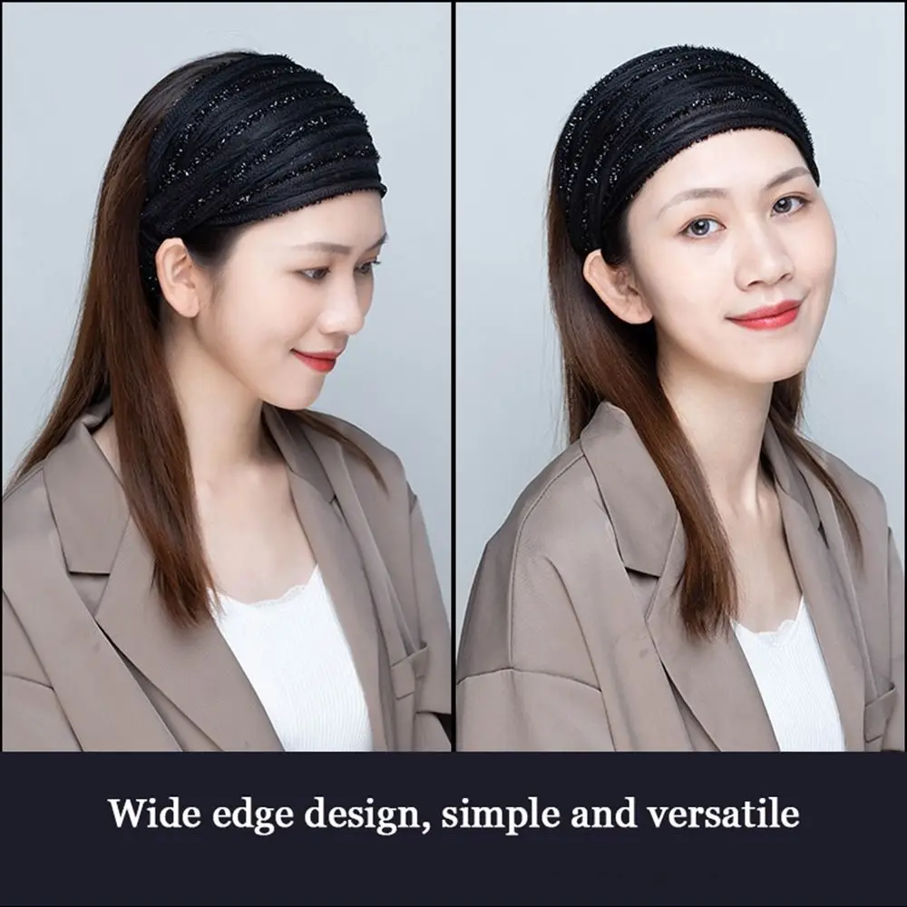 White Hair Elastic Hair Band Sequin Shiny Cloth Mother Hair Hoop Women Headband Korean Headwear Wide Hair Band Mesh Hairbands