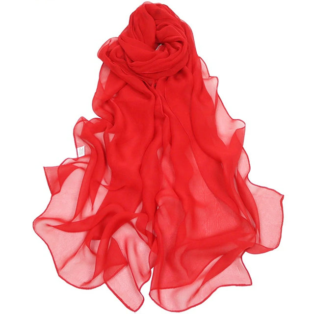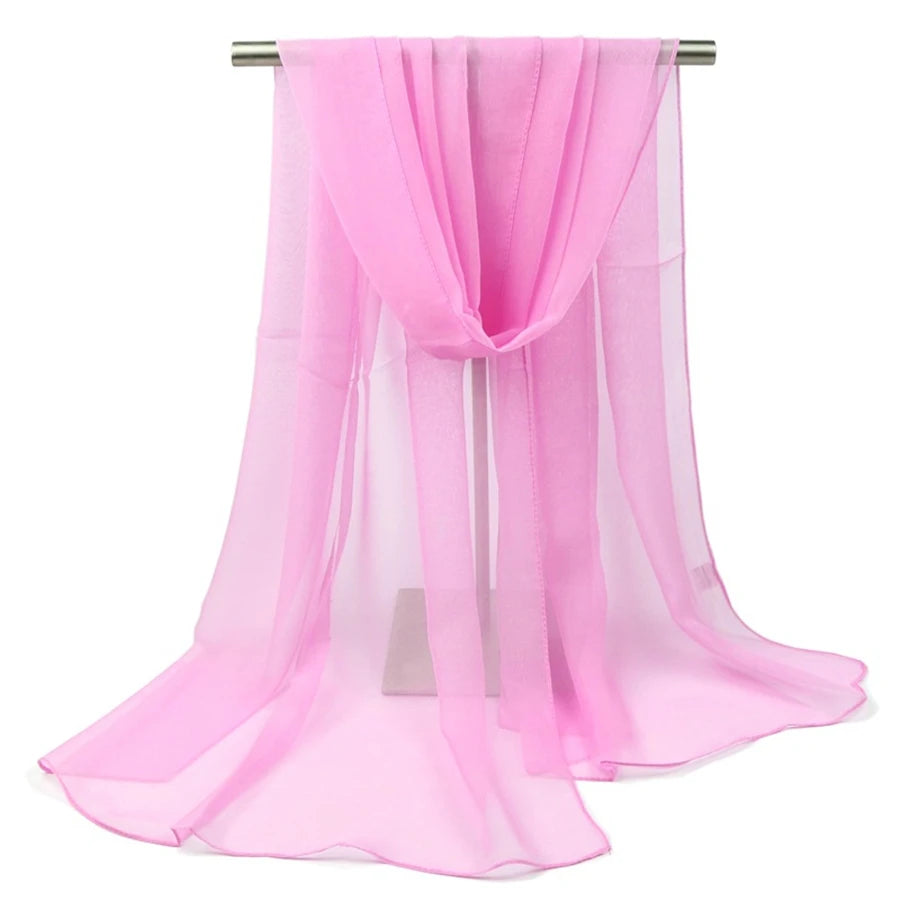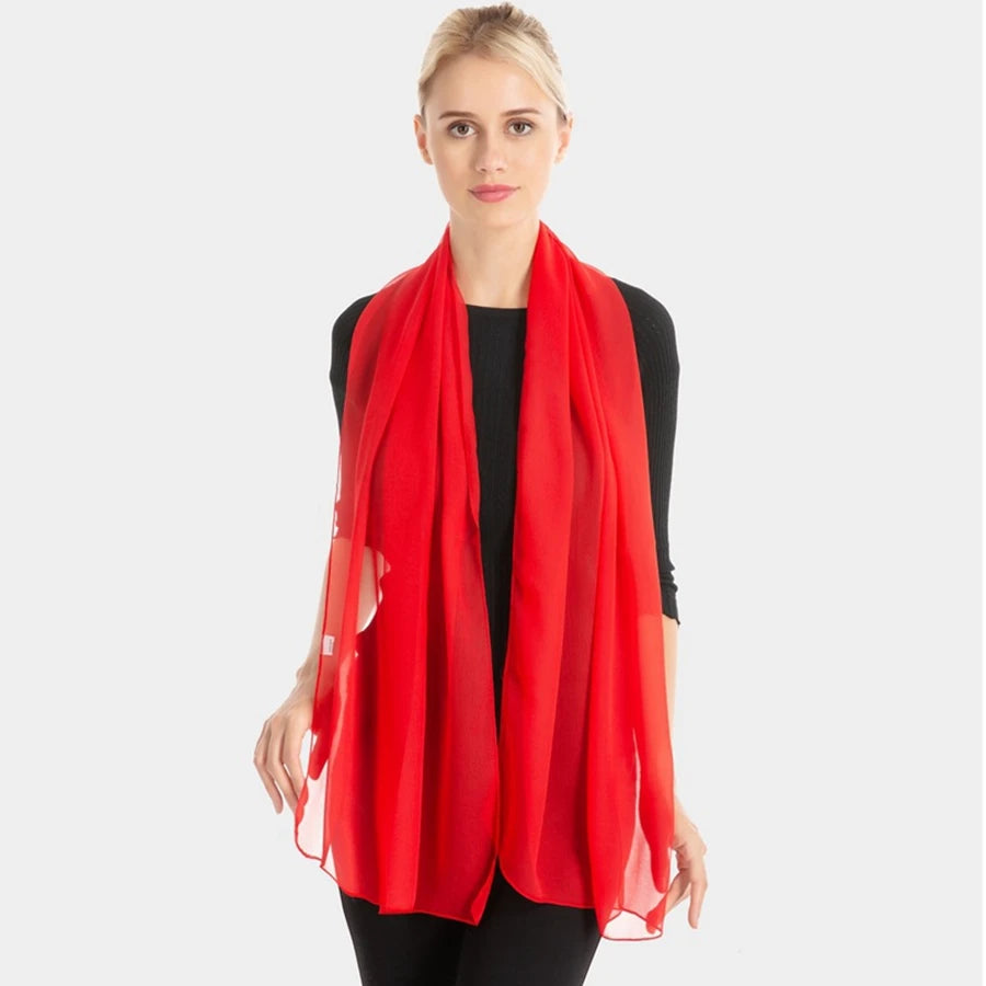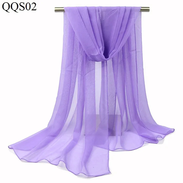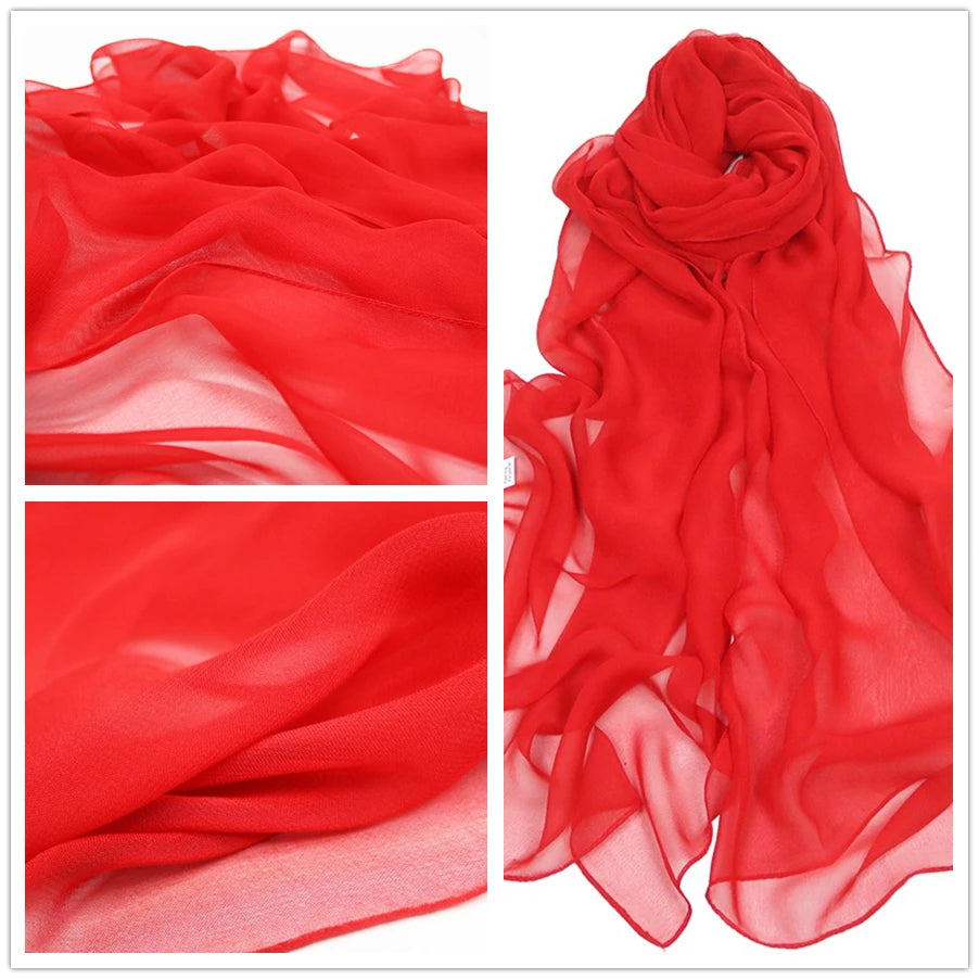Women Pure Color Georgette Silk Scarf Lady Travel Fashion Monochrome Simulation Scarves and Wraps Female Beach Shawl Wholesale