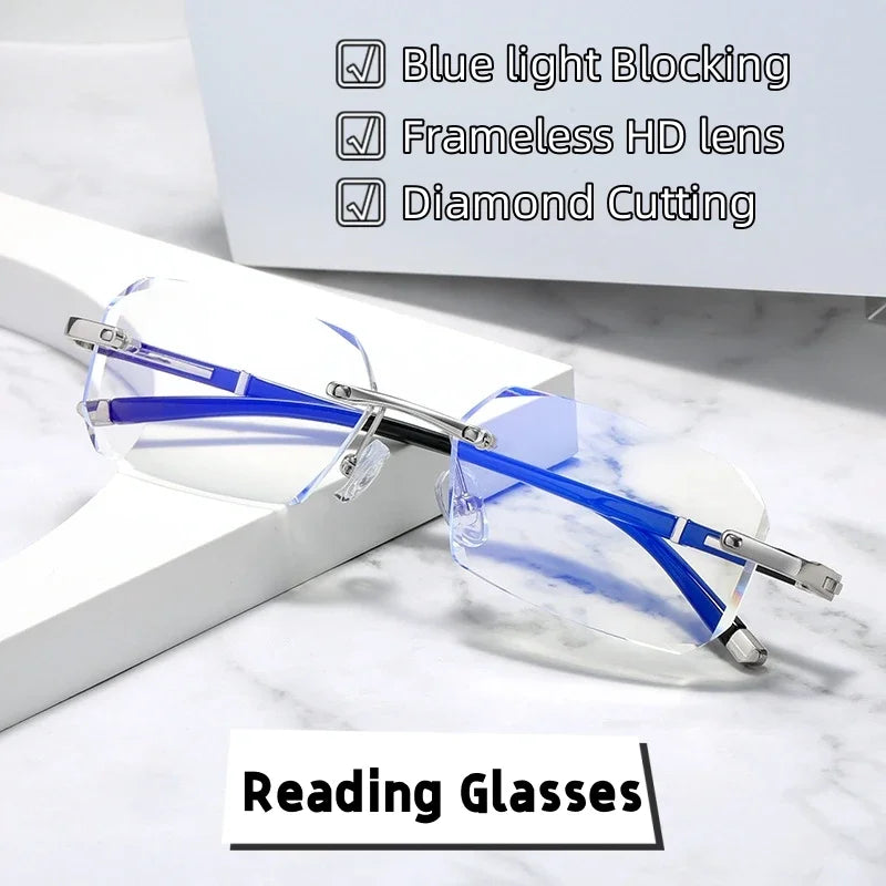 Luxury Blue Light Blocking Reading Glasses Women Men Cutting Frame Presbyopia Eyeglasses HD Lens Farsighted Prescription Eyewear