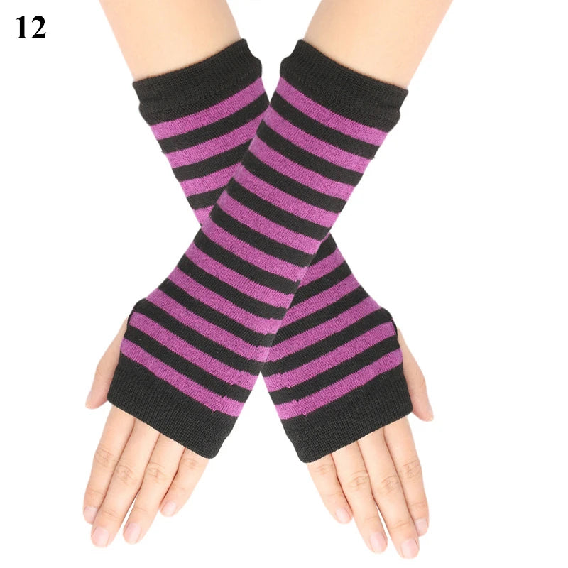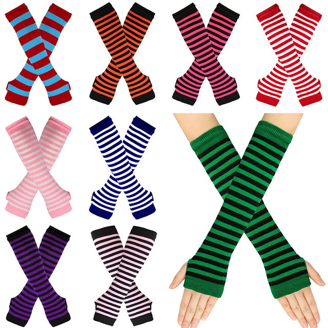 Unisex Long Fingerless Gloves Gloves Arm Cover Striped Cotton Wrist Sleeves Arm Warmer Sleeve Knitted Gloves Womens Fingerless