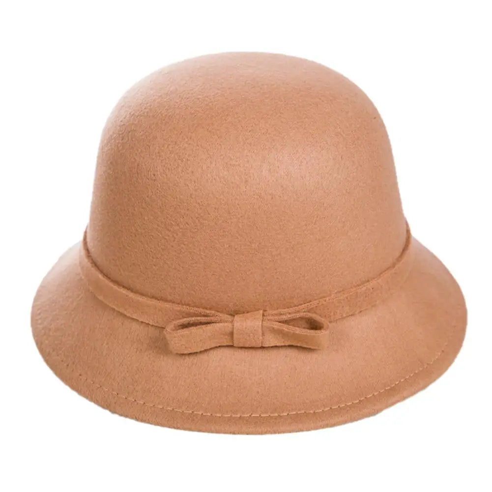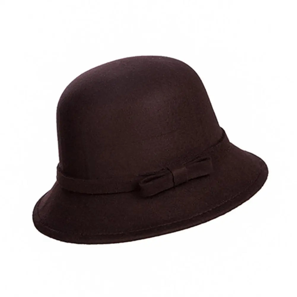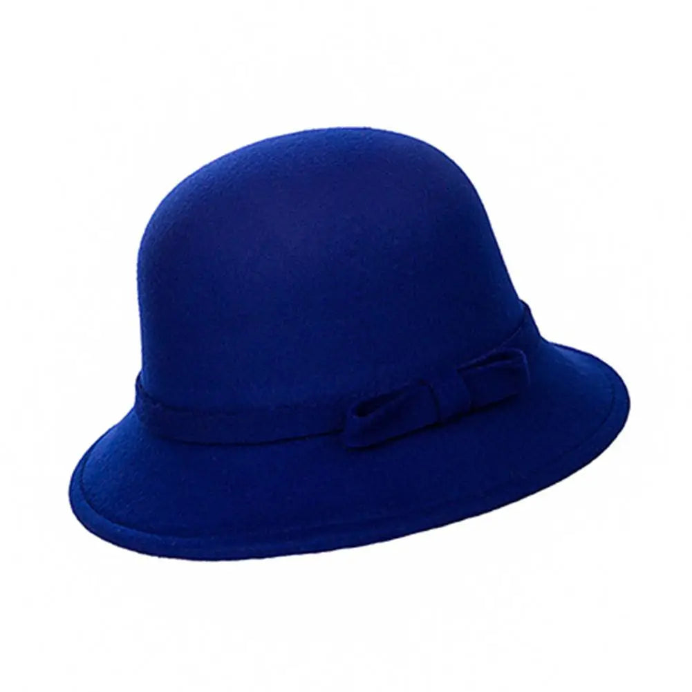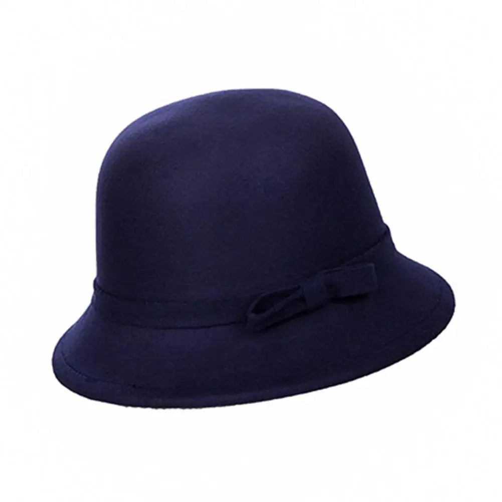 Bowler Hat Bow Warm Autumn Winter Wool Boater Flat Top Hat For Women's Felt Wide Brim Fedora Hat Jazz Cap Elegant Dome Hat
