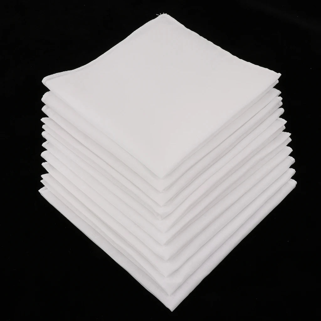 10pcs White Hankie Women Handkerchiefs Cotton Square Super Soft Washable Hanky Chest Towel Pocket Square 28 x 28cm