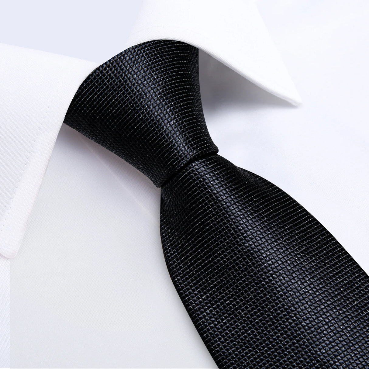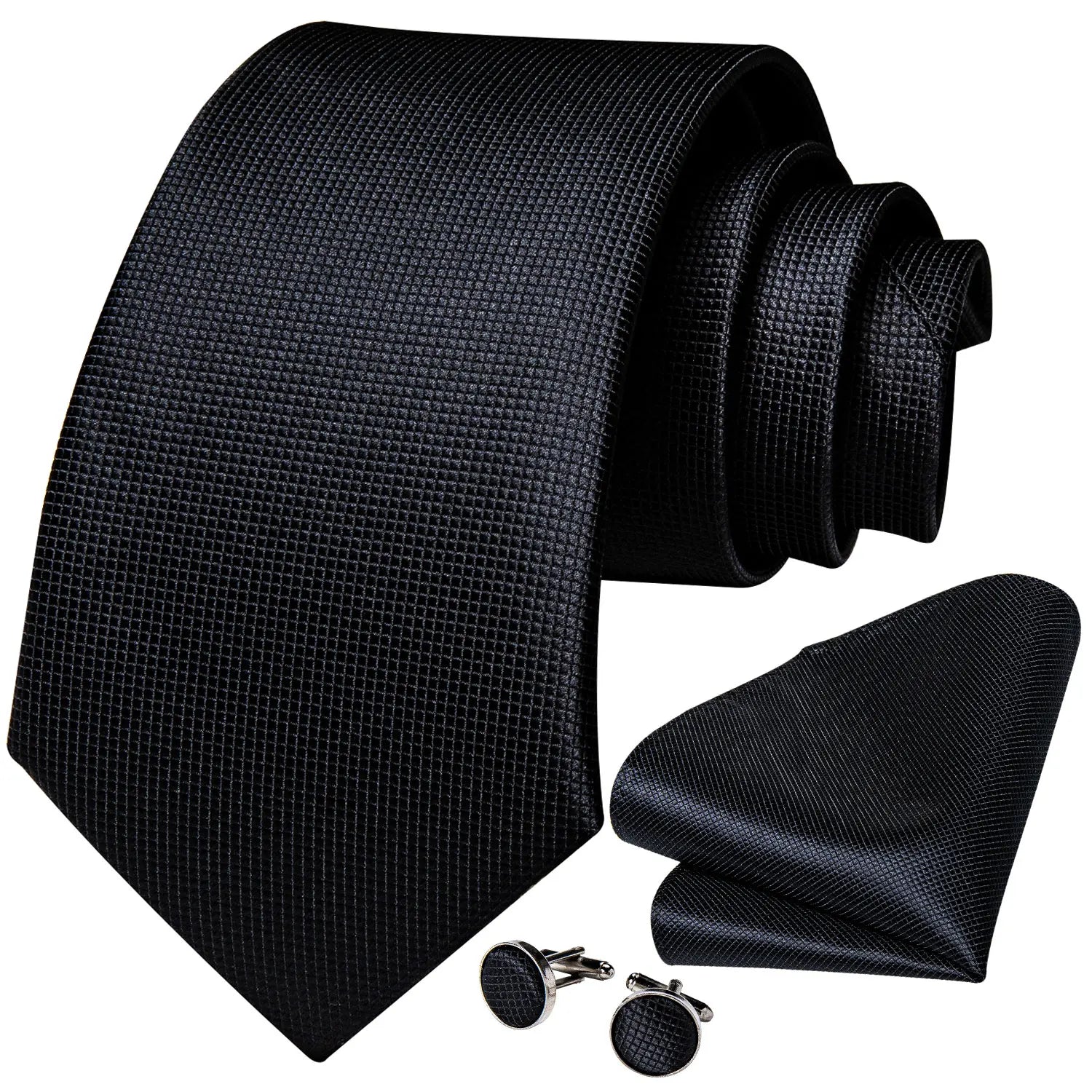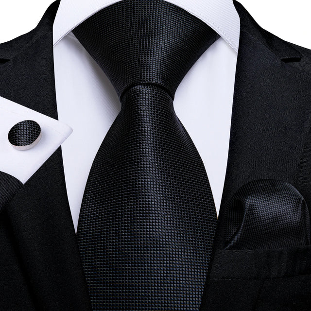Black Men's Solid Ties 8cm Wide Polyester Business Formal Wedding Party Necktie Pocket Square Cufflinks Gift for Husband