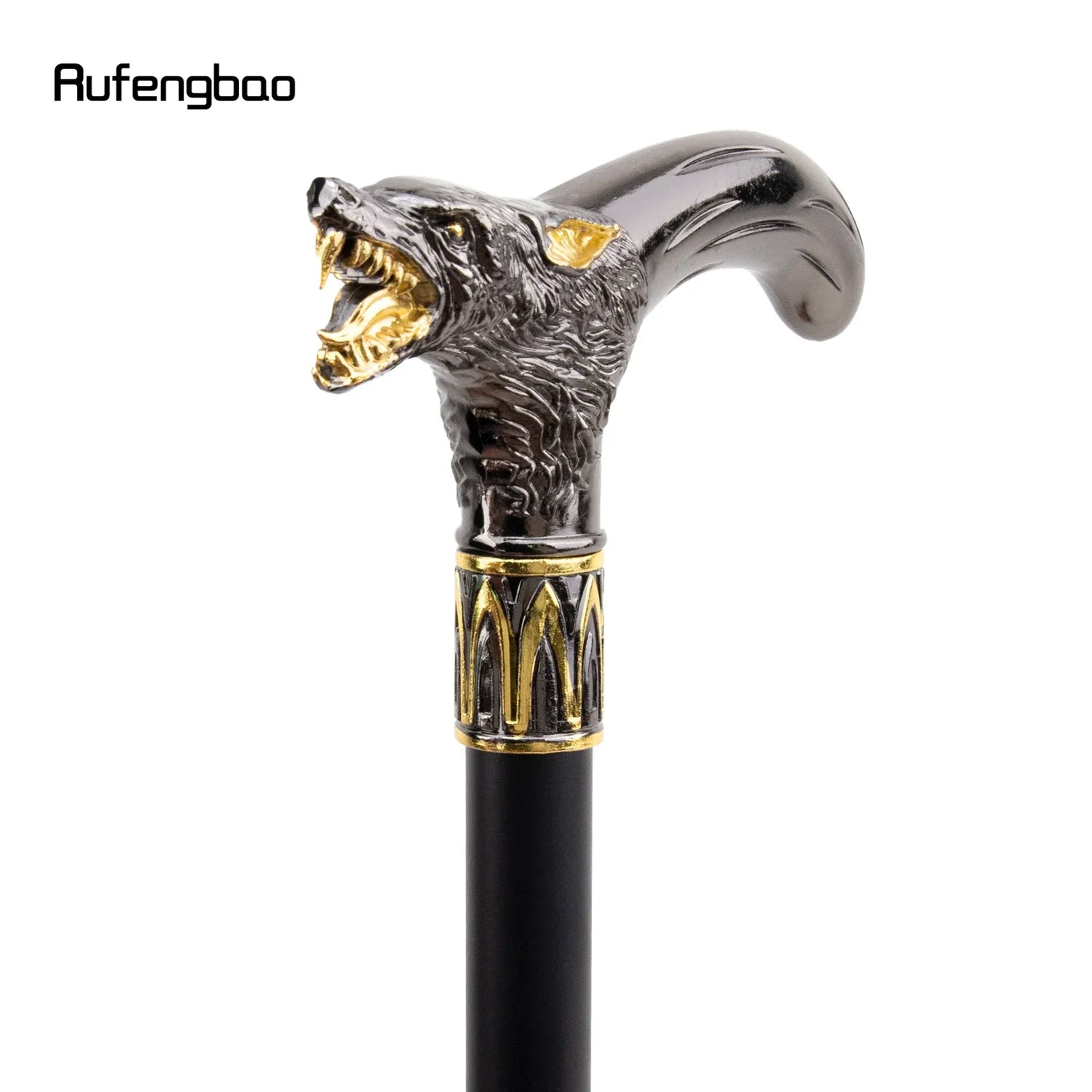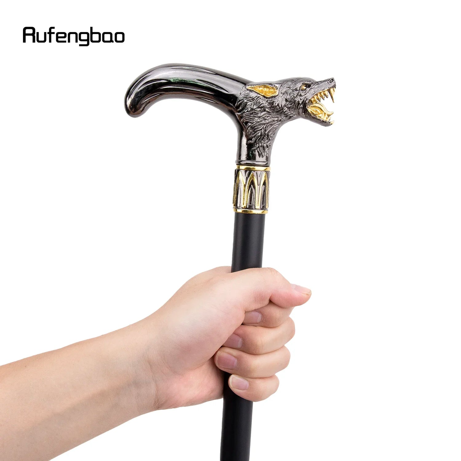 Golden Black Wolf Head Biting Walking Cane Fashion Decorative Walking Stick Gentleman Elegant Cosplay Cane Knob Crosier 93cm