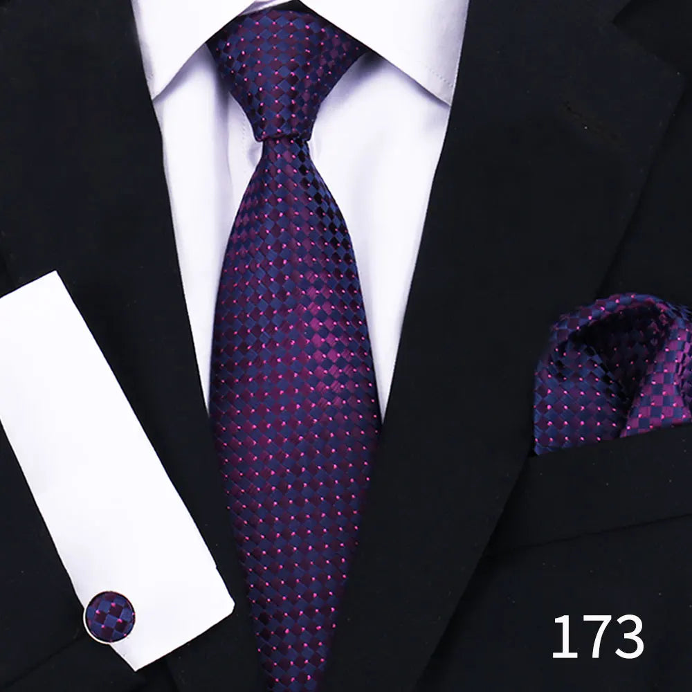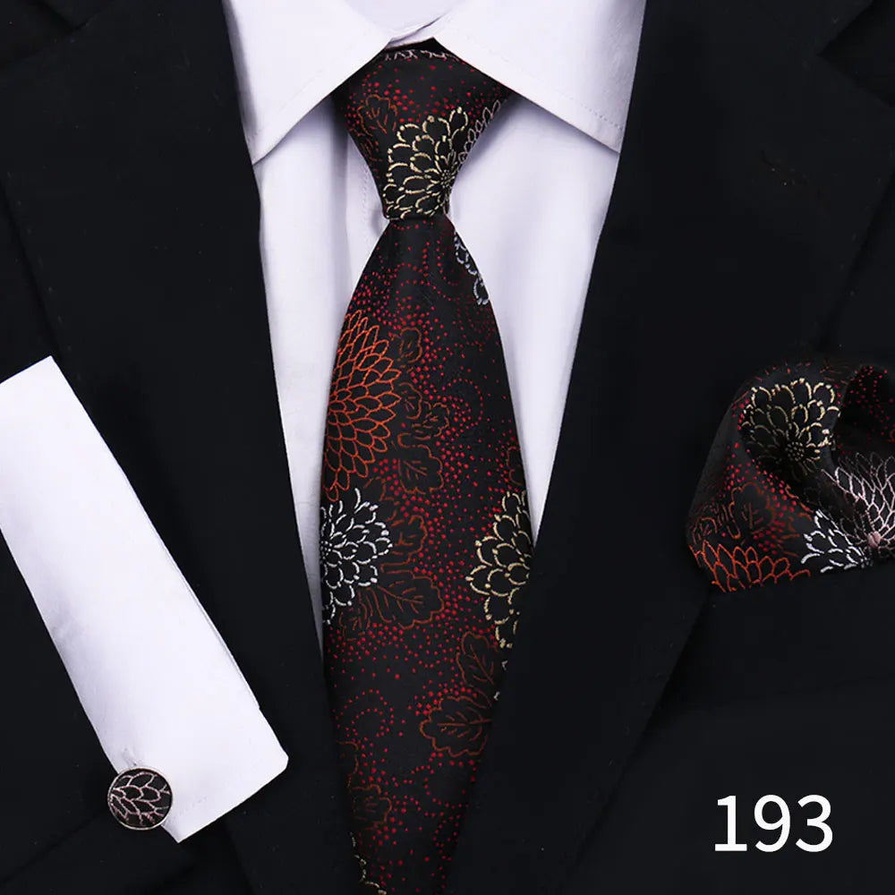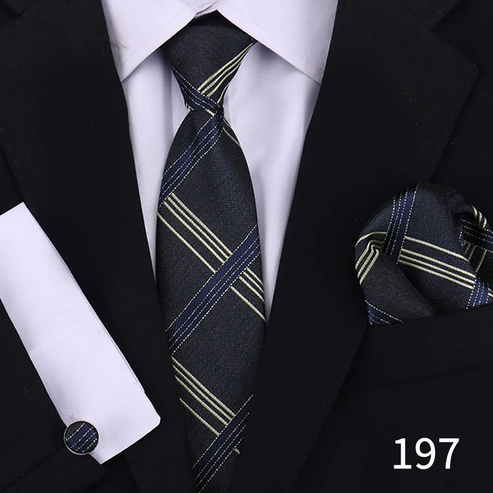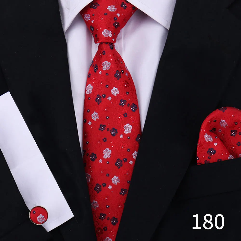 Tie For Men Classic Plaid Handkerchiefs Red Necktie Cufflinks For Men Blouse Business Wedding Accessories Women Collar Man Gift