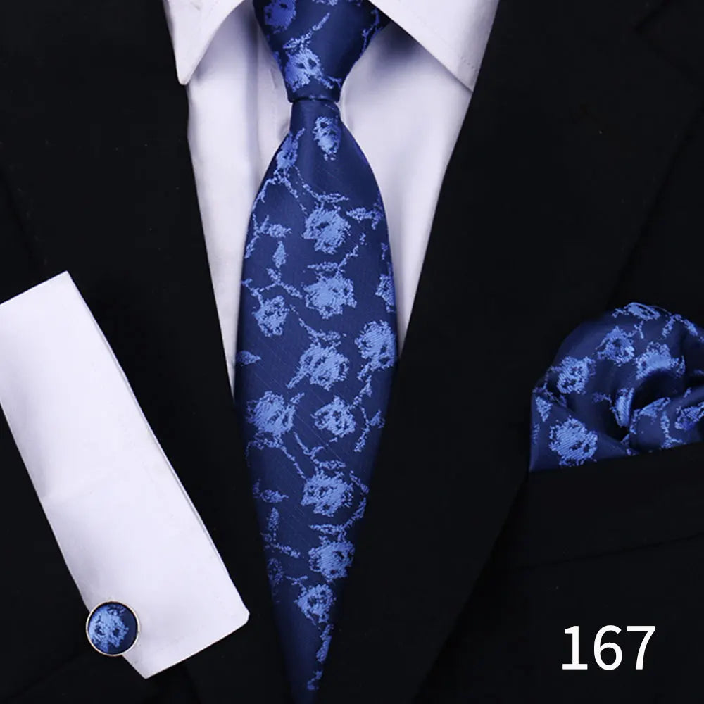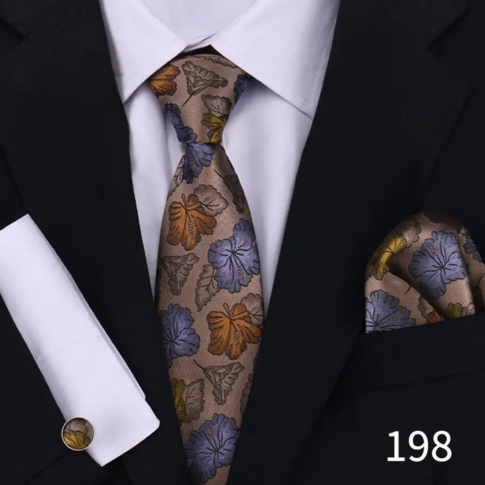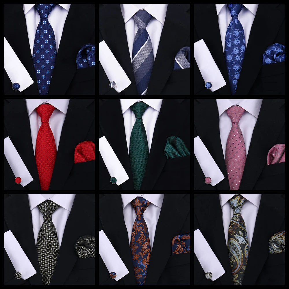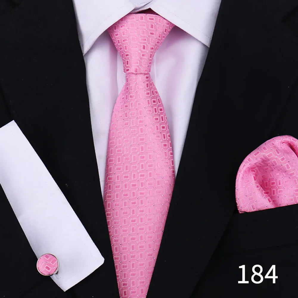 Tie For Men Classic Plaid Handkerchiefs Red Necktie Cufflinks For Men Blouse Business Wedding Accessories Women Collar Man Gift
