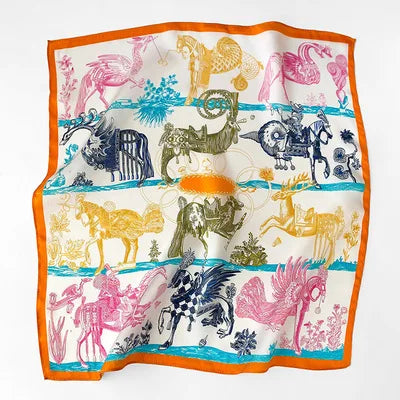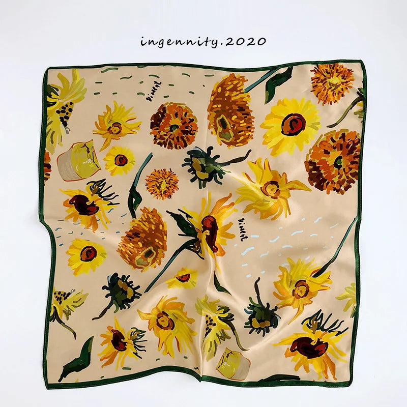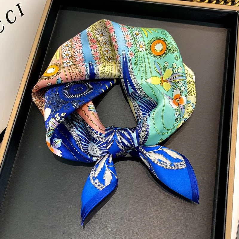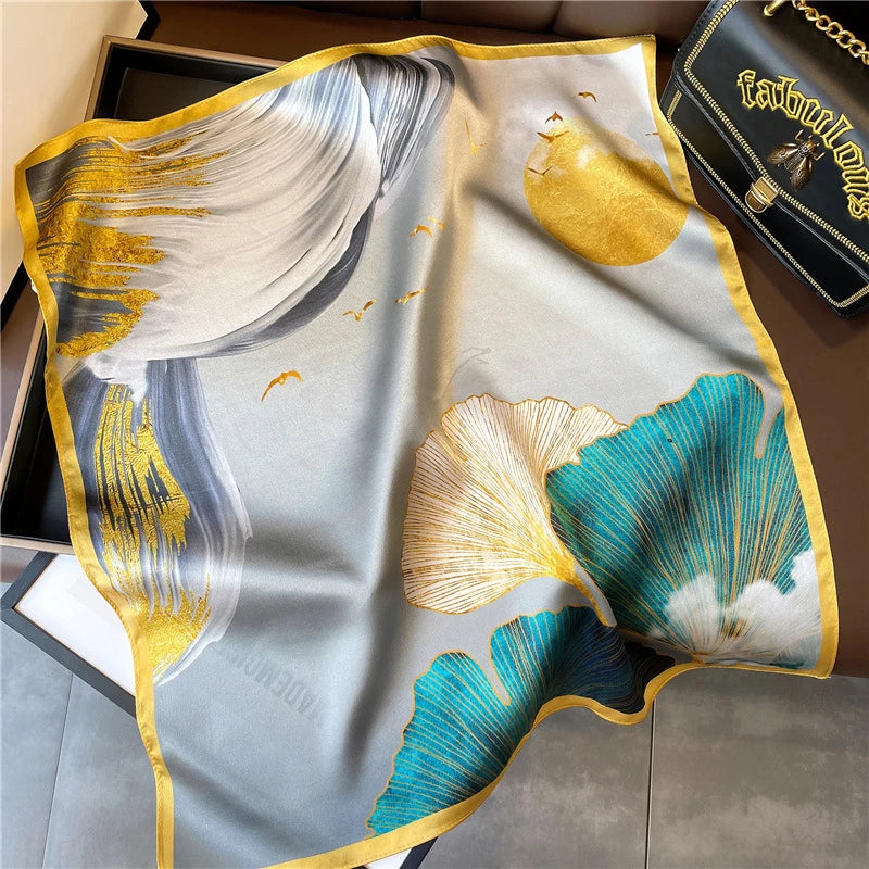 New 100% Natural Real Silk Scarf Fashion Women Summer Beach Small 53*53cm Neck Scarves Shawl Bandana Hijab Pashmina Poncho 2023