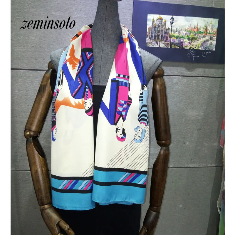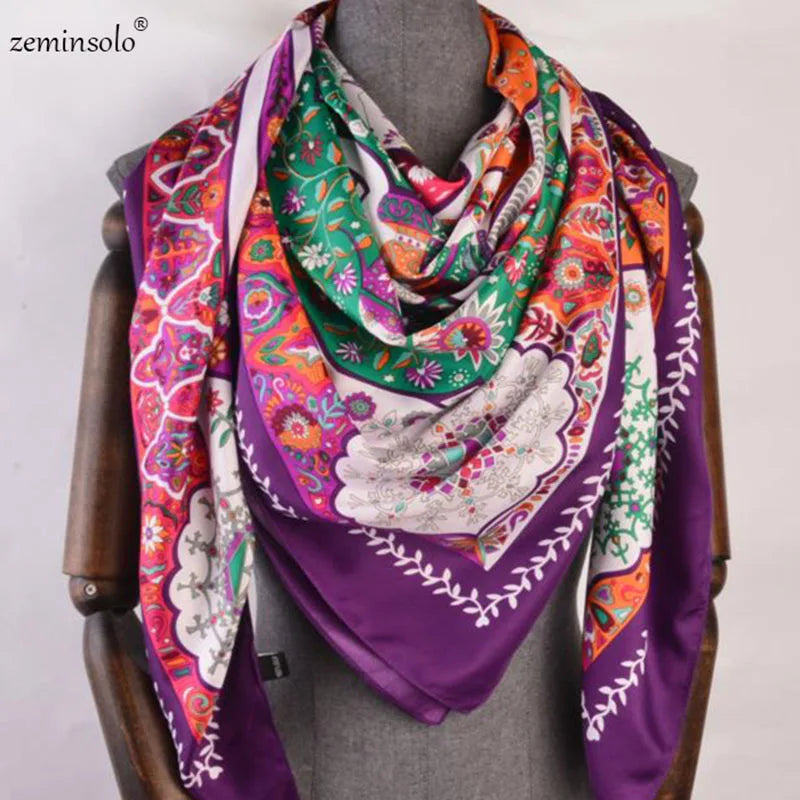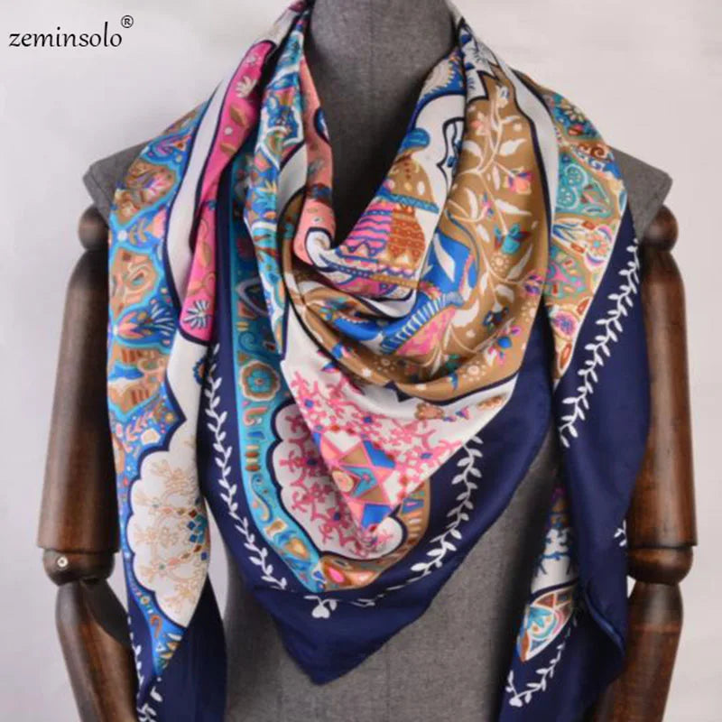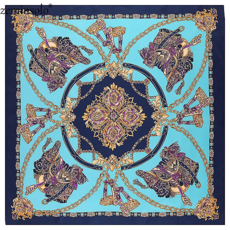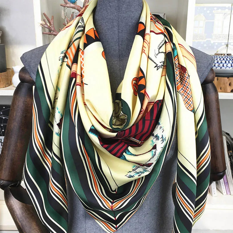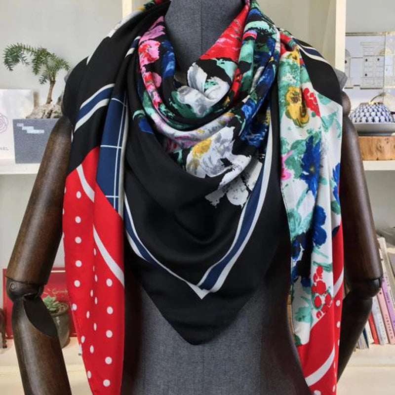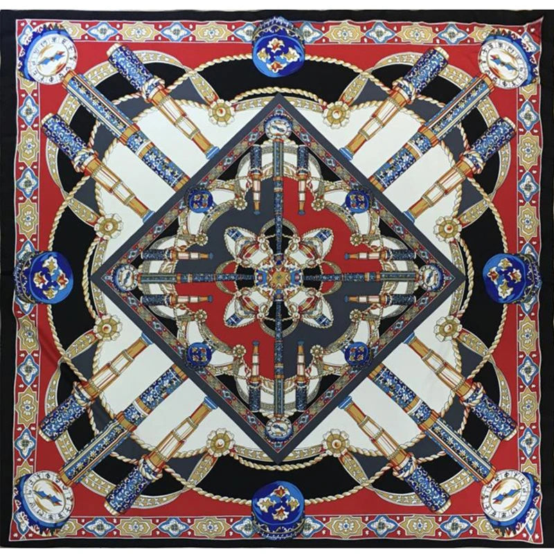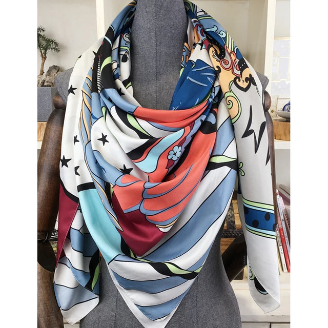 130*130cm Luxury Brand Printed Cartoon Square Scarf Twill Silk Scarf Kerchief Scarves For Ladies Women Fashion Shawls Echarpe