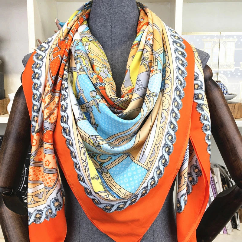130*130cm Luxury Brand Printed Cartoon Square Scarf Twill Silk Scarf Kerchief Scarves For Ladies Women Fashion Shawls Echarpe - 8 is backordered and will ship as soon as it is back in stock.