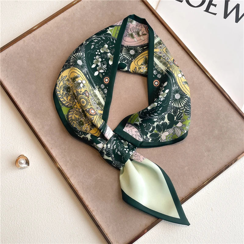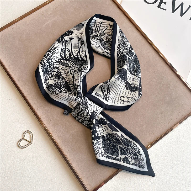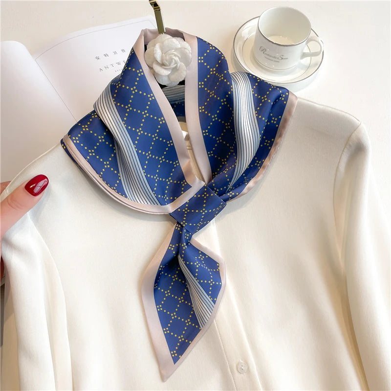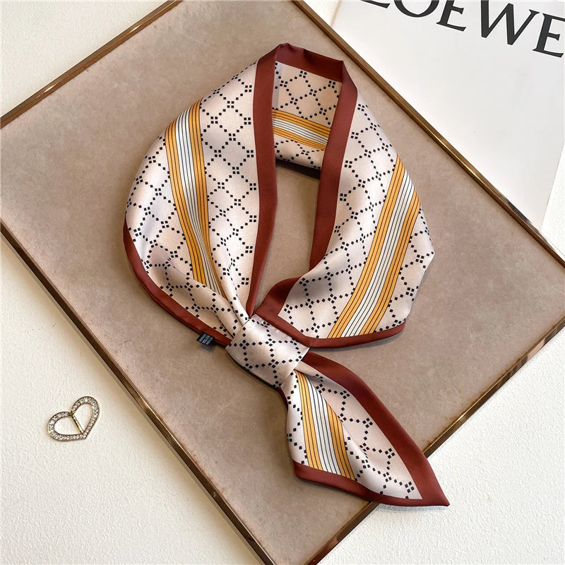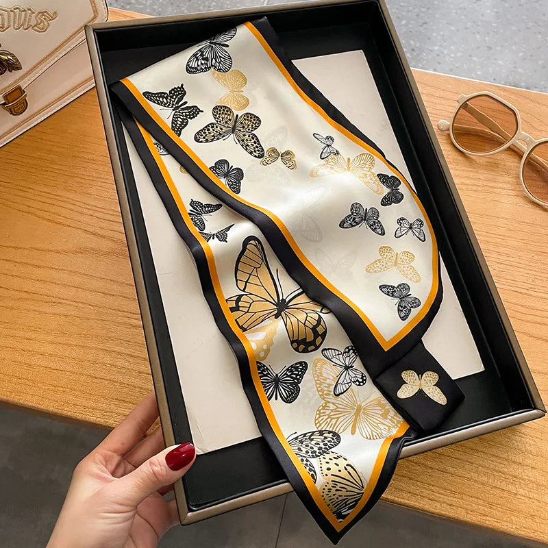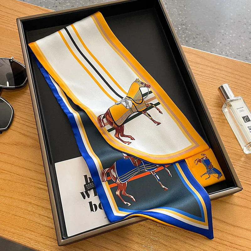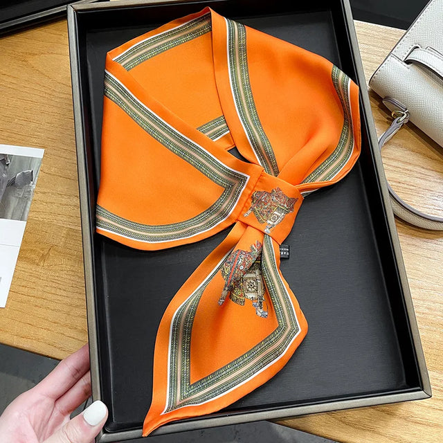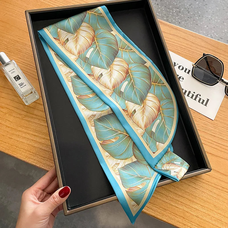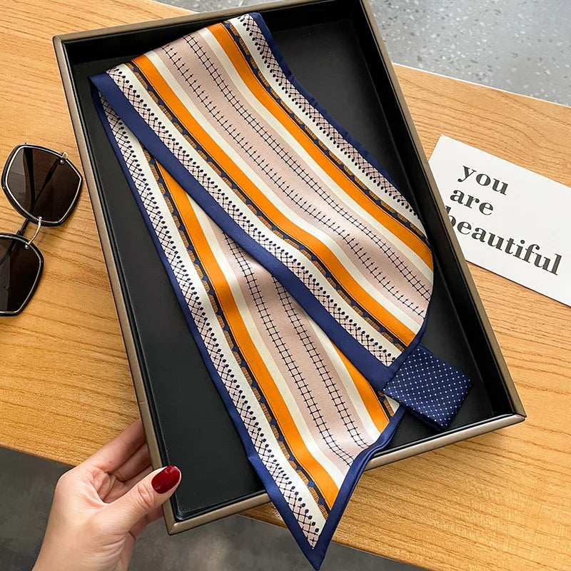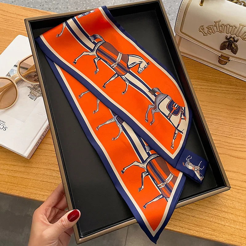Fashion Print Hair Ribbons Scarf Women Silk Scrunchies Hair Bands Female Neck Tie Skinny Bag Scarfs Bandana Accessories Headware