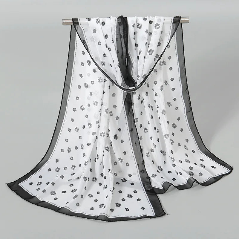 Luxury Chiffon Silk Scarf Spring Summer Scarf Women Head Scarf Beach Shawls Bandana headband muslim hijabs Black Scarf/Scarves