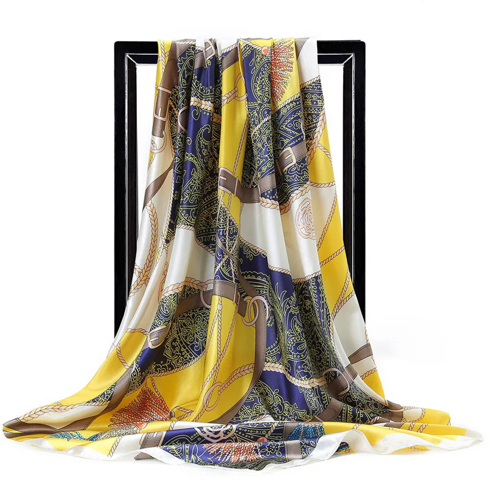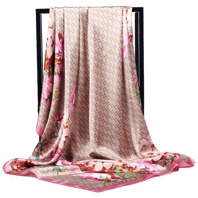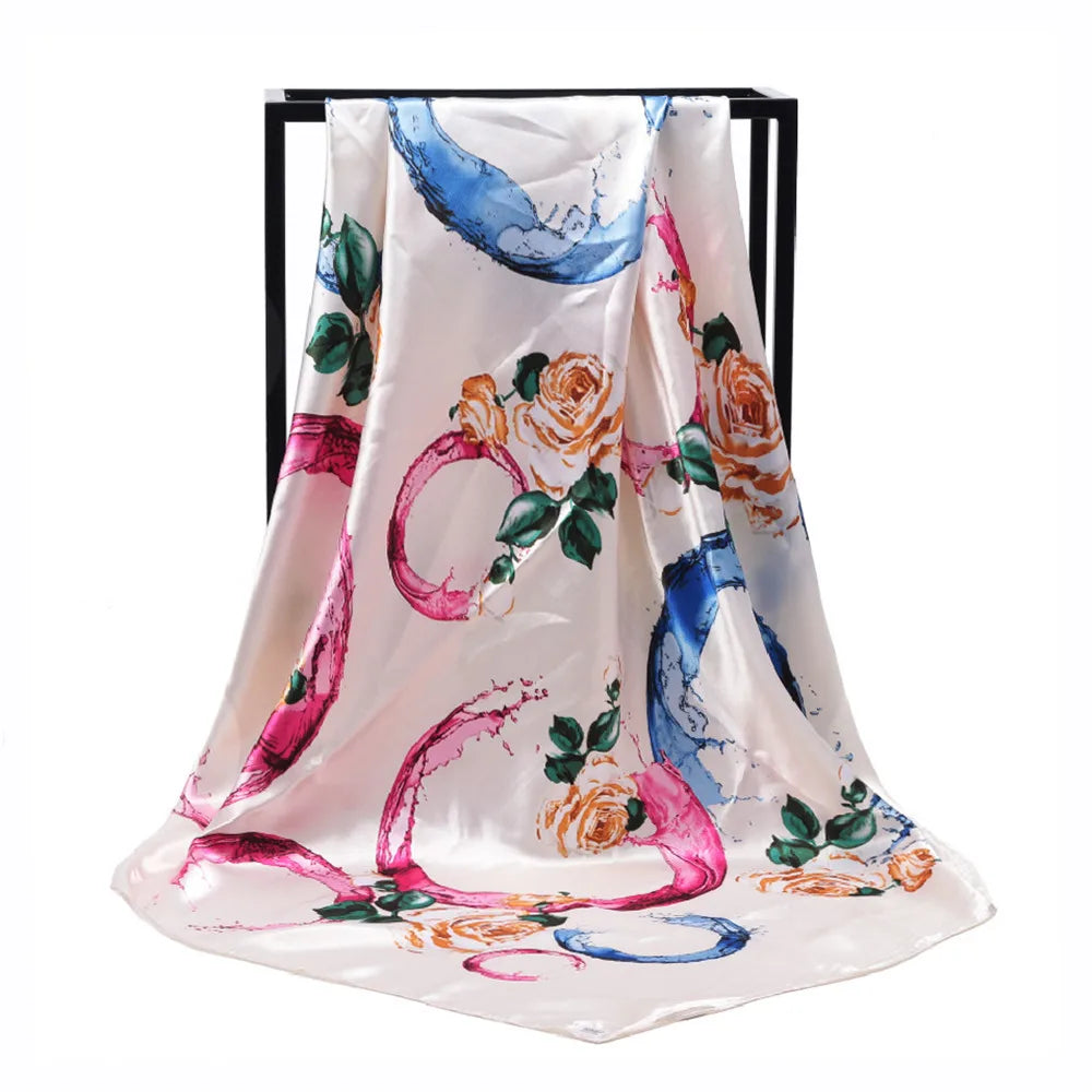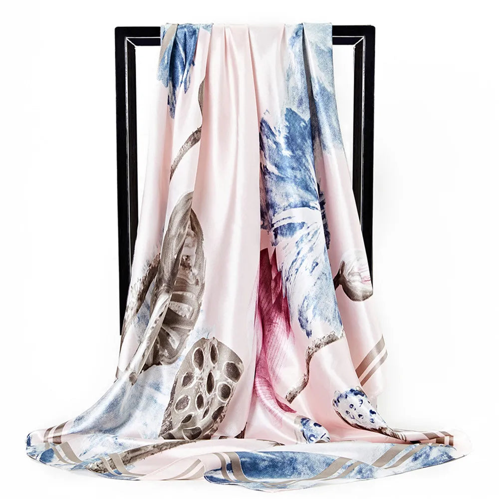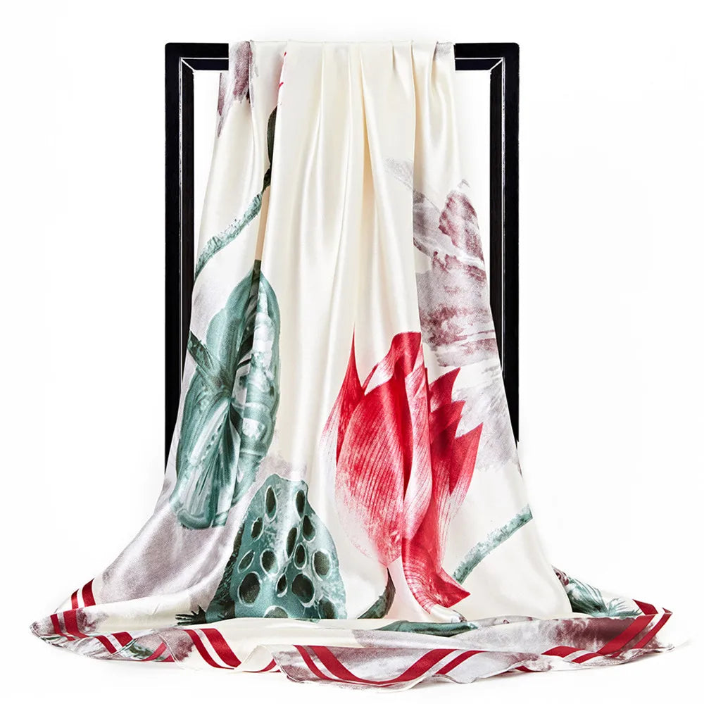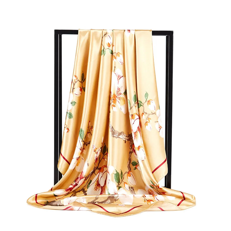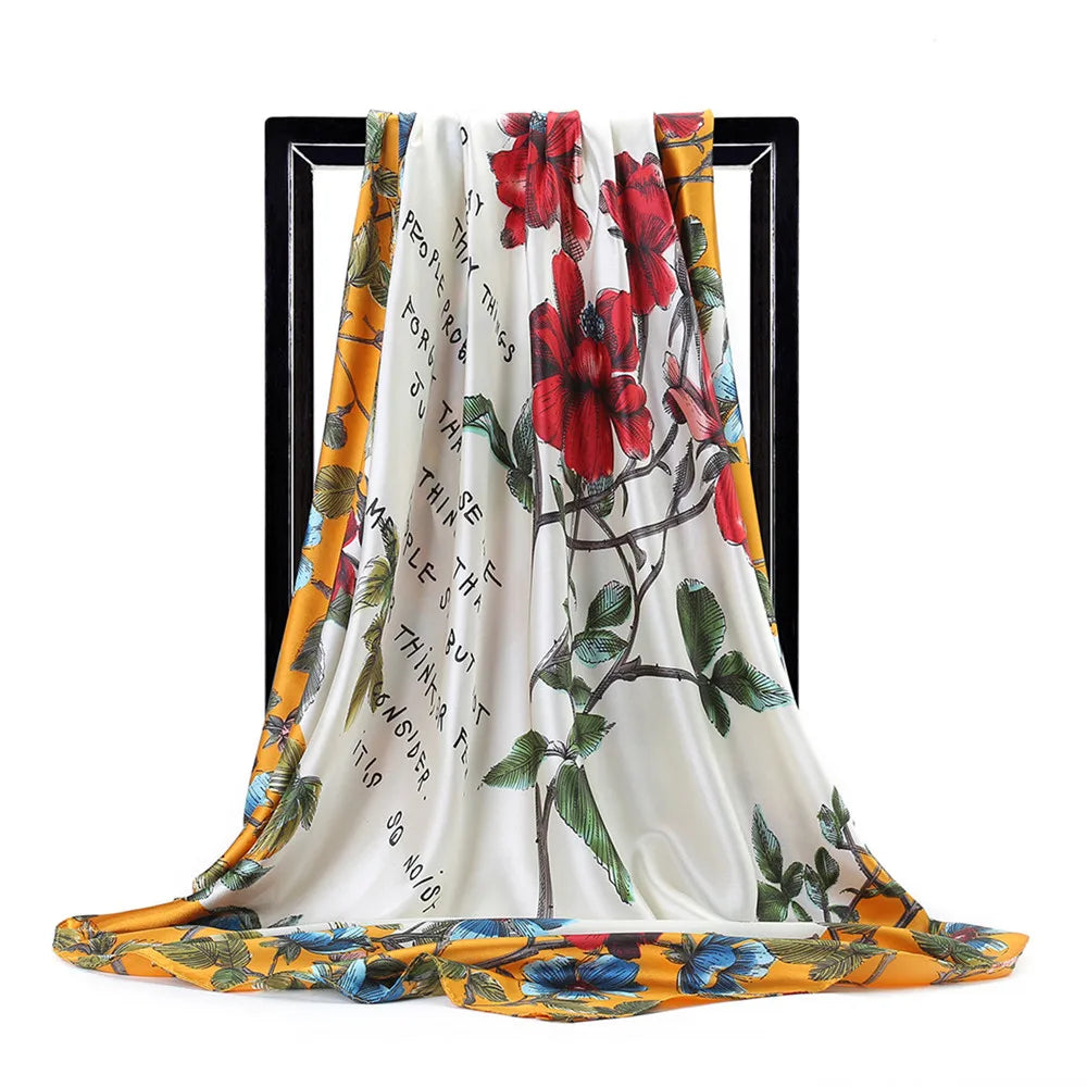 Luxury Silk Head Scarf Women Summer Foulard Satin Square Head Hijab Scarfs For Ladies Brand Shawls 90*90 Silk Scarf Muslim Hijab