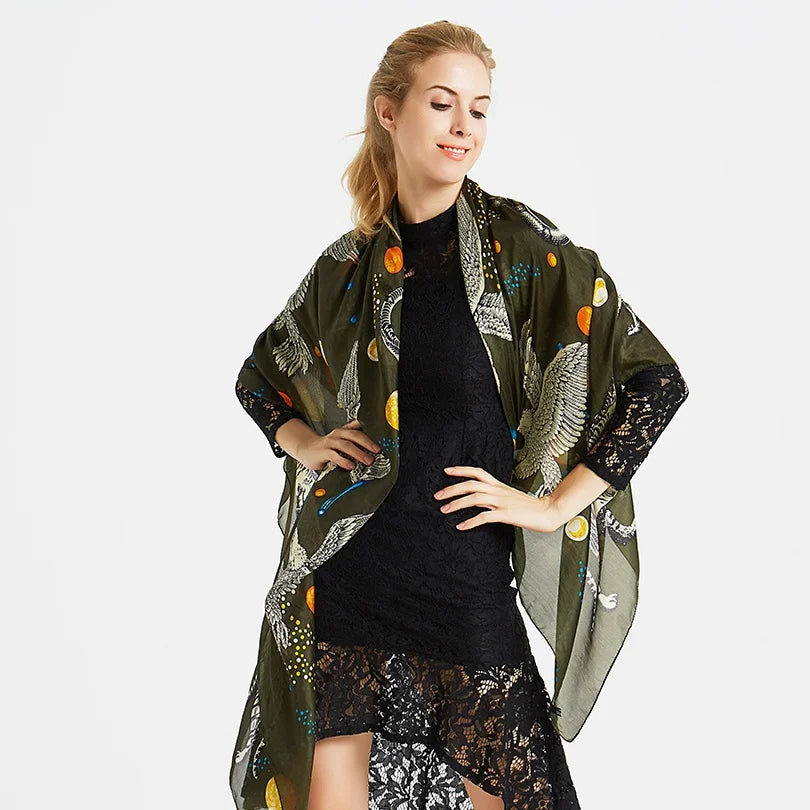 Orange Blue Winter Women Pure Silk Scarf Shawl Spring Fall Fashion Large Elegant Classical Long Scarves Wraps Printed 180*110cm