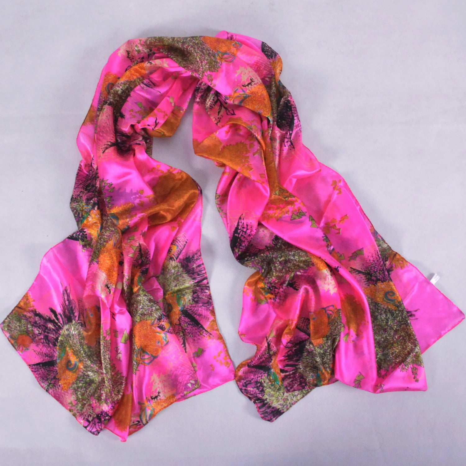 Orange Blue Winter Women Pure Silk Scarf Shawl Spring Fall Fashion Large Elegant Classical Long Scarves Wraps Printed 180*110cm - orange is backordered and will ship as soon as it is back in stock.