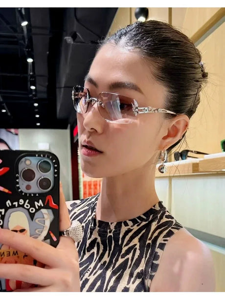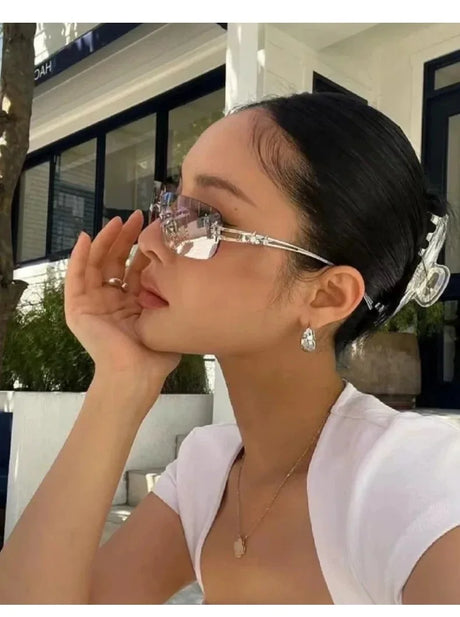 49245 One Lens Sunglasses Rimless Oversized Men Women Fashion Shades UV400 Vintage Glasses