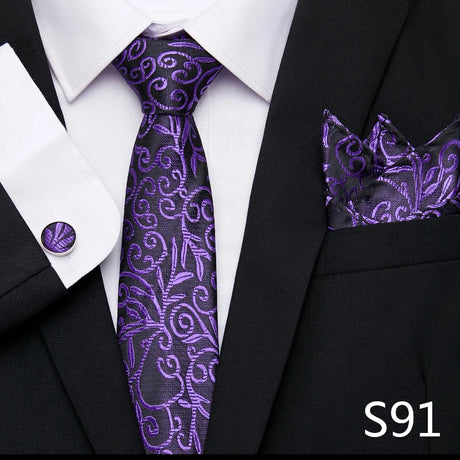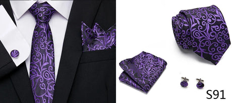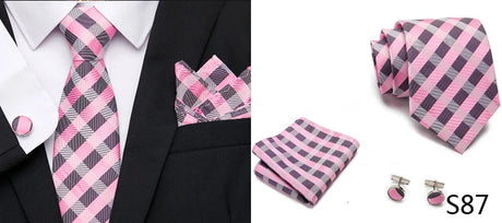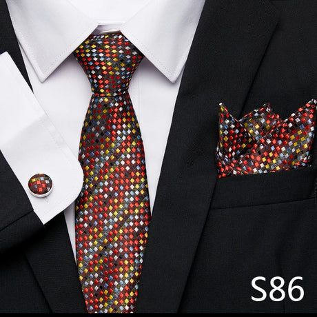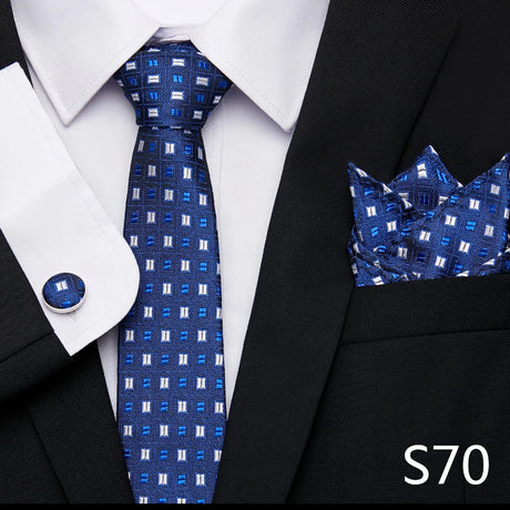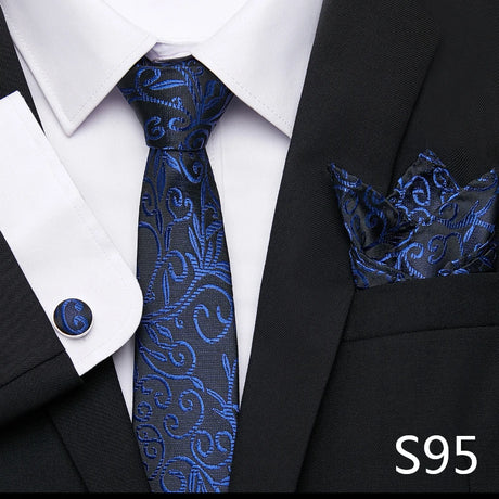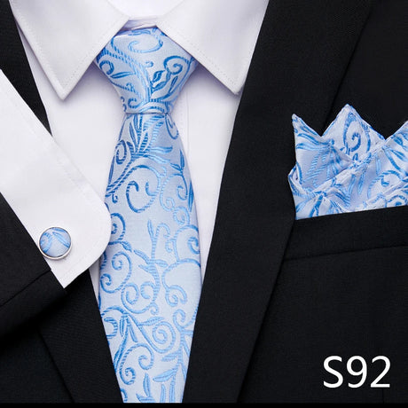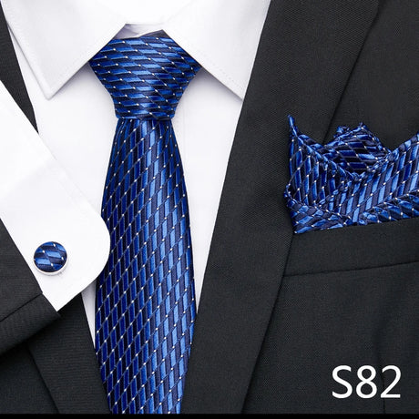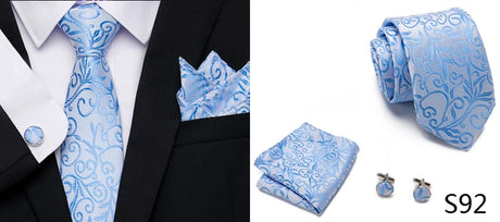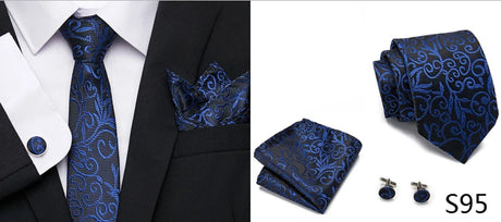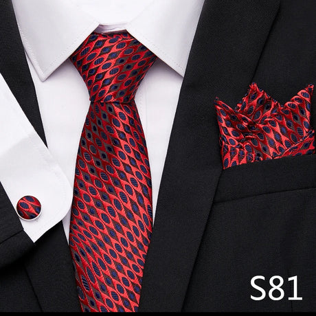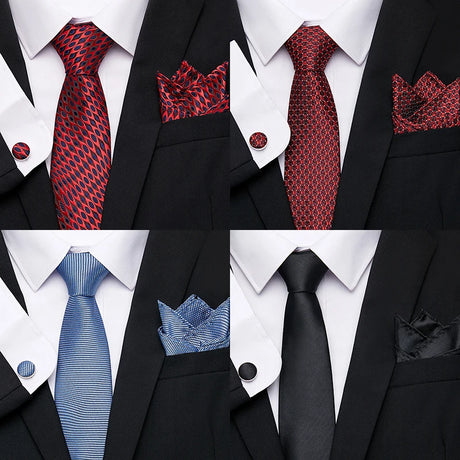 Luxury Tie Handkerchief Pocket Squares Cufflink Set Necktie For Men Blue Red Clothing Accessories