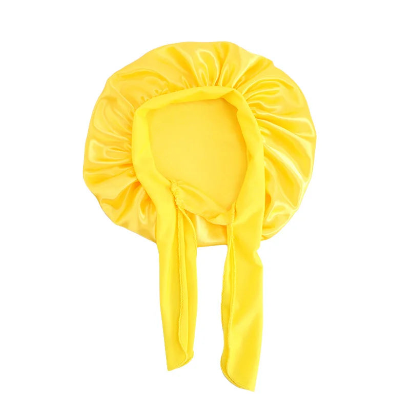Solid Satin Silk Bonnet with Band Tie Baby Sleep Cap Bowknot Kids Baby Night Sleep Cap Beanies Girl Makeup Cap Children Nightcap