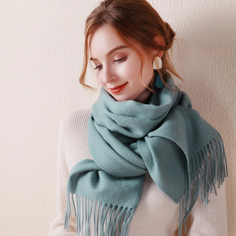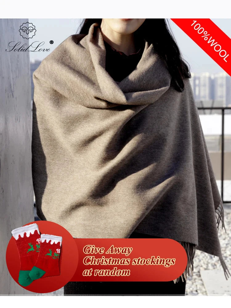 100% Wool Scarf Women Thickening Cashmere Winter Scars Shawls Fashion Female Pashmina Scarves Oversized Keep Warm Warps 300g