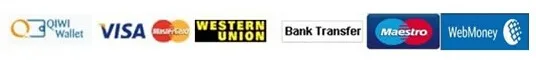1)We accept Qiwi, Visa, MasterCard, Western Union, bank transfer ,maestro and Web money .