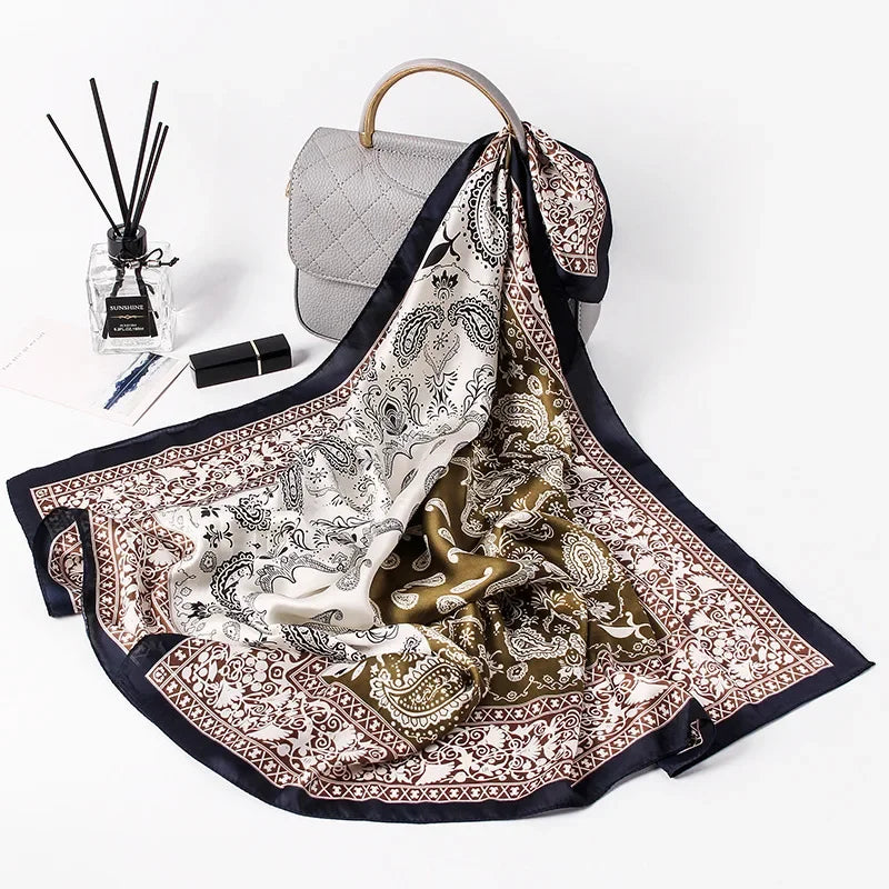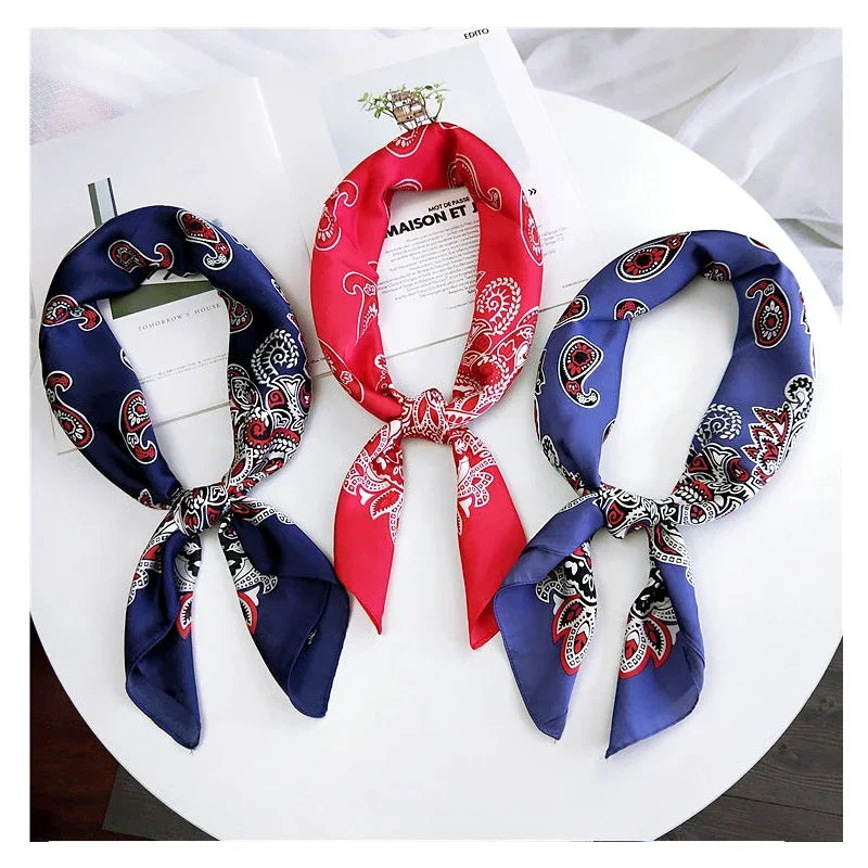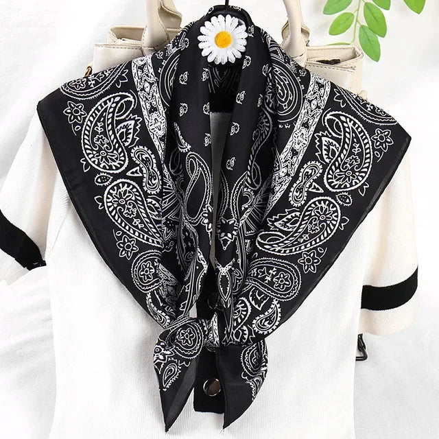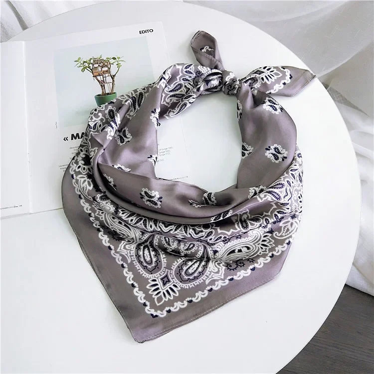 2023 Fashion Bandana Hair Scarf For Women Paisley Print Kerchief Silk Satin Head Scarfs Square Shawl Wraps Neck Scarves For Lady