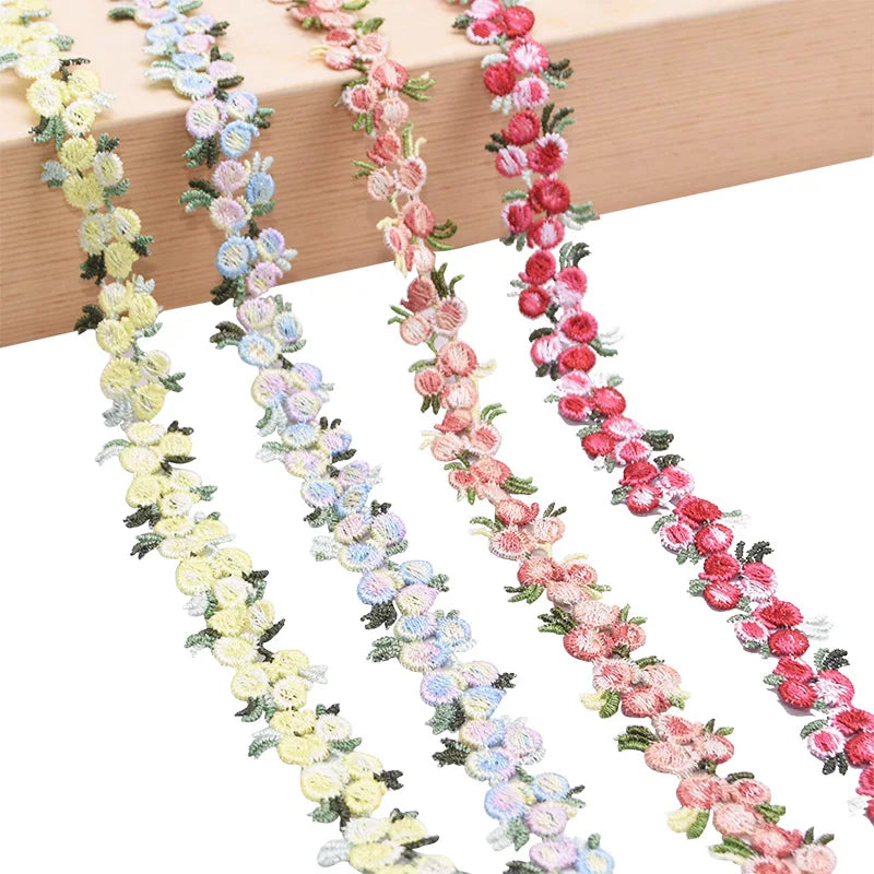 2Yards Flower Embroidered Lace Trim Ribbons Fabric Trim DIY Sewing Handmade Craft Materials Clothes Accessories Home Decoration
