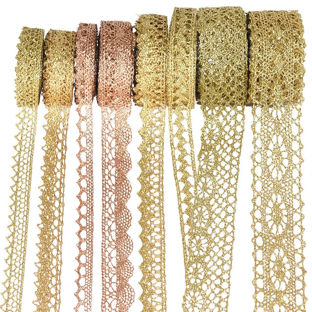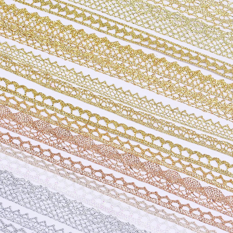 5/10yard Gold/silver Lace Trim Ribbon Roll Glitter Crocheted 7-24mm Ribbons Webbing Decor DIY Craft Gift Packing Sewing Supplies
