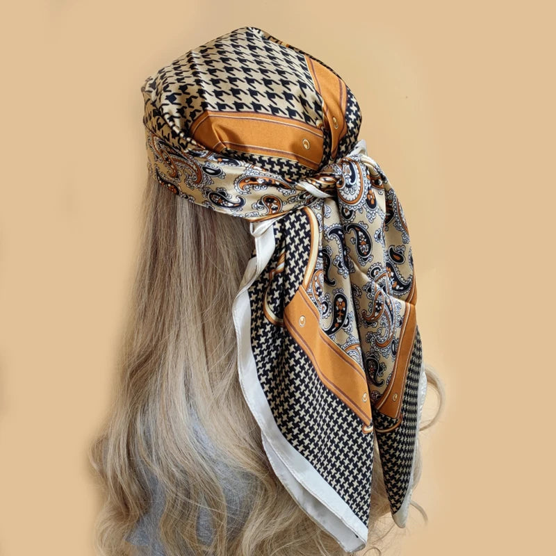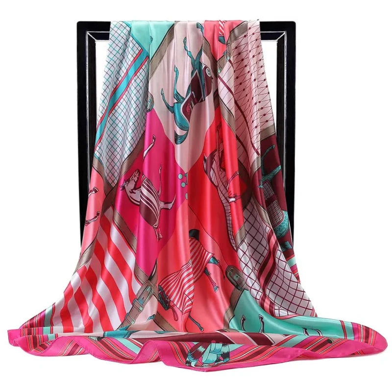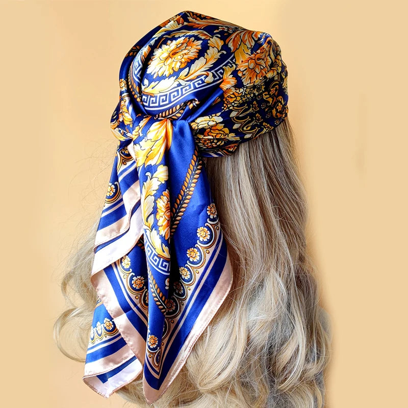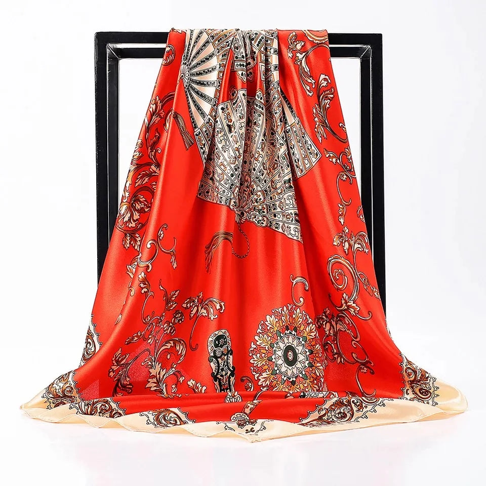 90*90cm Fashion Scarves Women Shawl Print Silk Satin Hijab Female Bandana Luxury Brand Square Ladies bandanna foulard muffler
