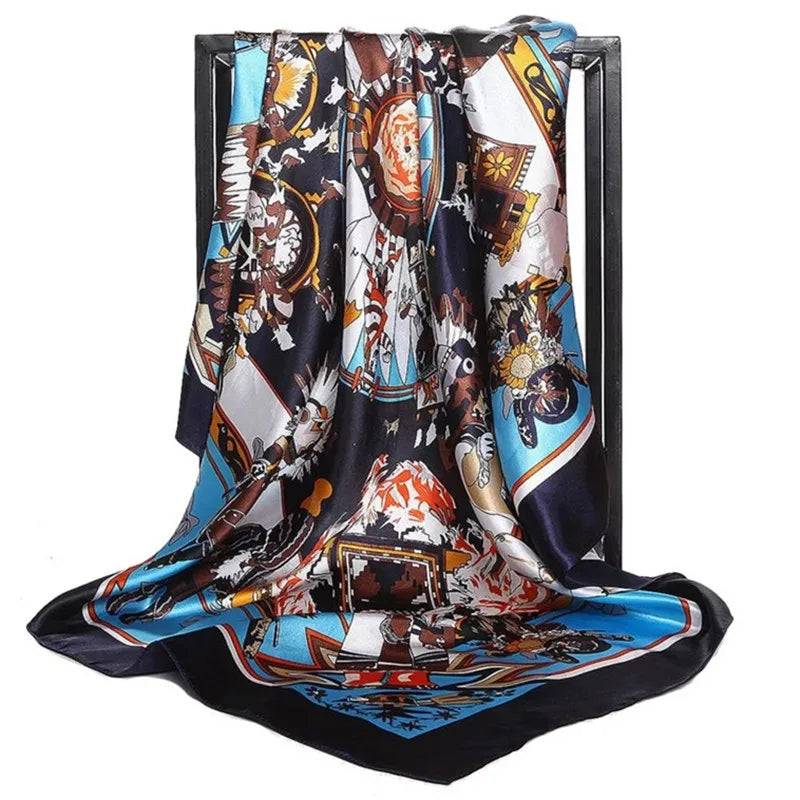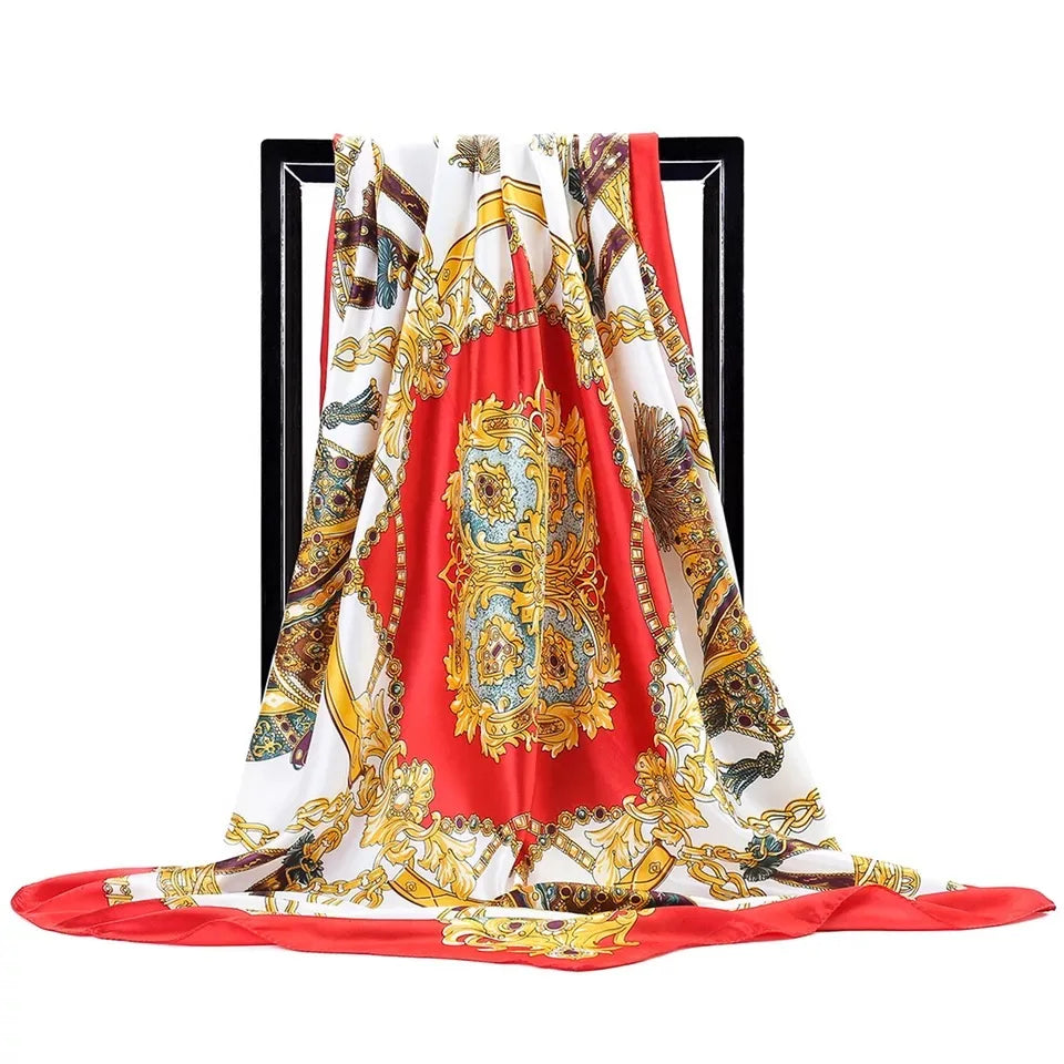 90*90cm Hijab Scarves Women Fashion Print Silk Satin Female Luxury Brand Square Shawls Head Ladies bandanna foulard muffler girl