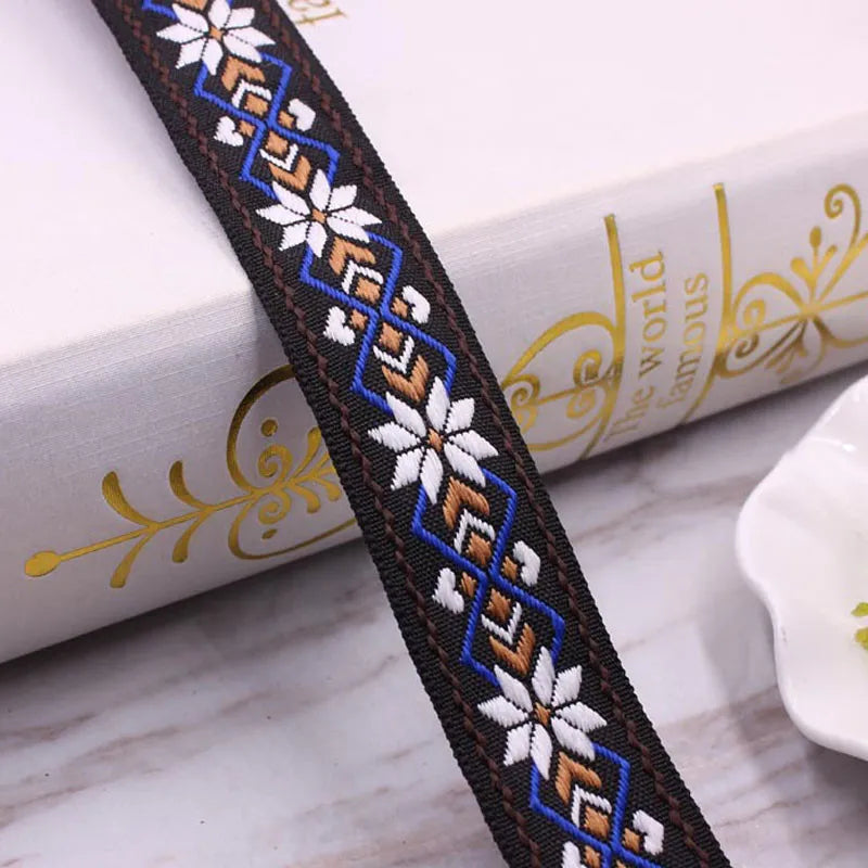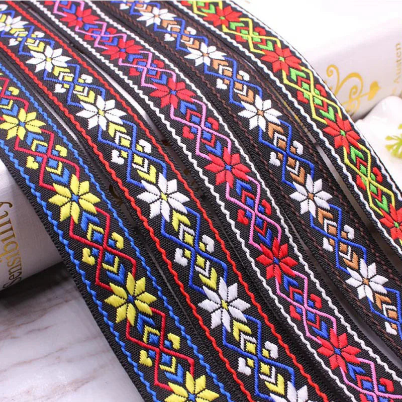 Ethnic Embroidered Jacquard Ribbons Trim DIY for Decoration Handcraft Apparel Sewing Headwear 25mm 1yard/lot