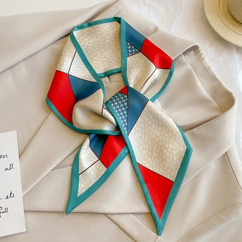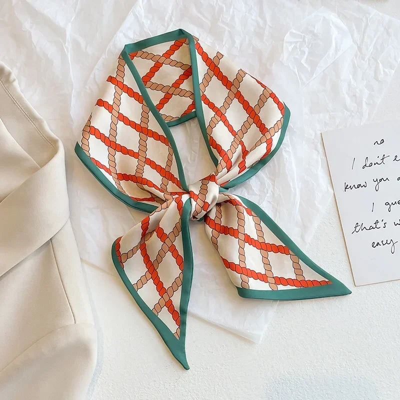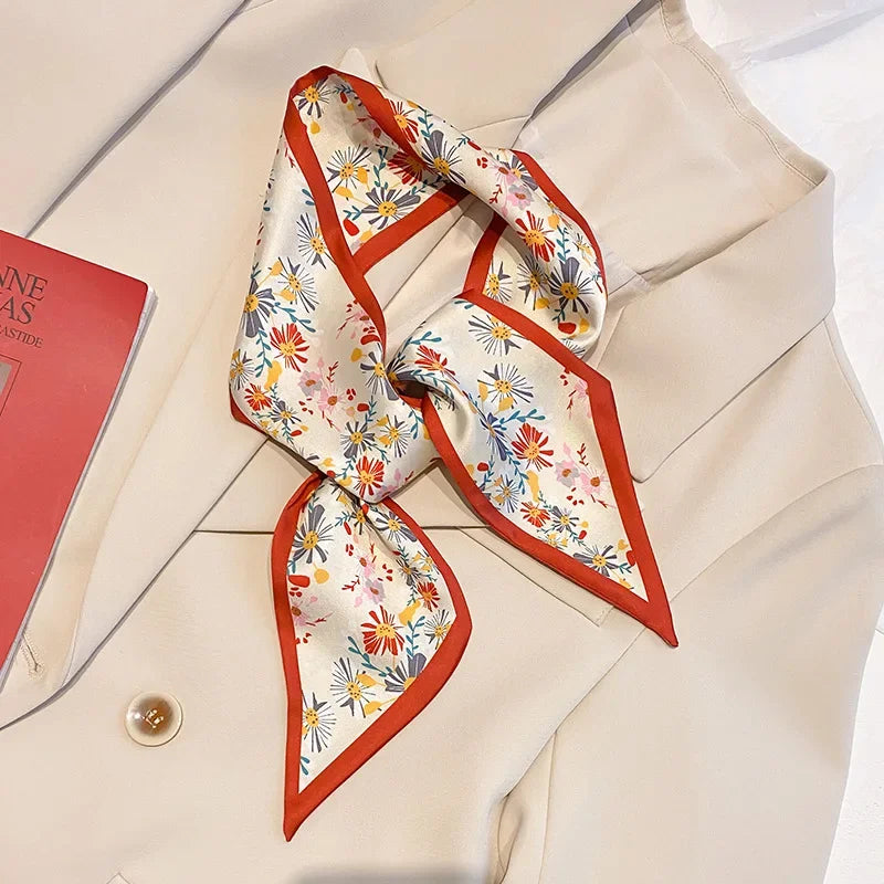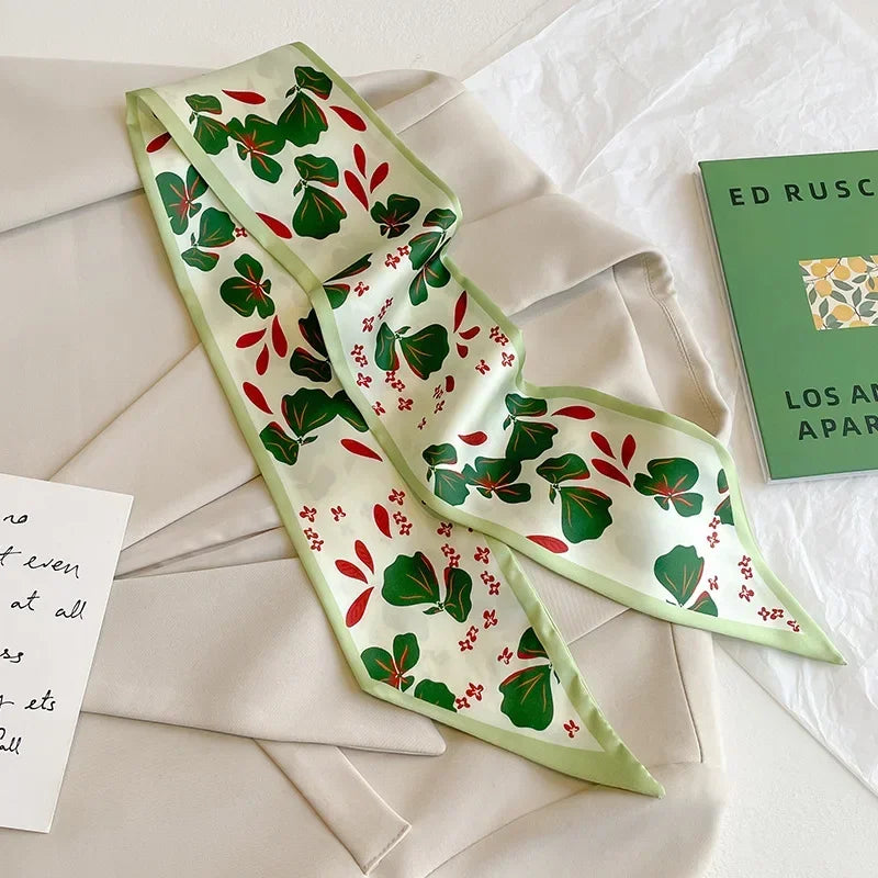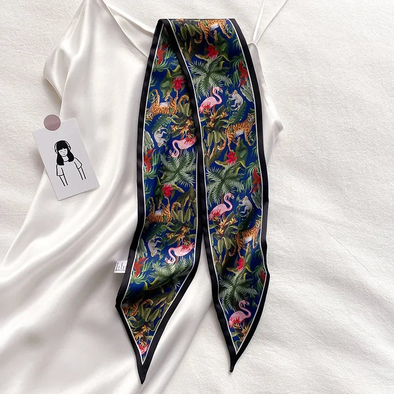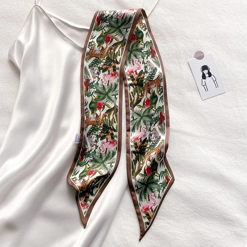Leopard Flamingo Print Silk Long Scarf Women Luxury Hairband Narrow Scarves Small Neckerchief Summer Headband Ribbons Female