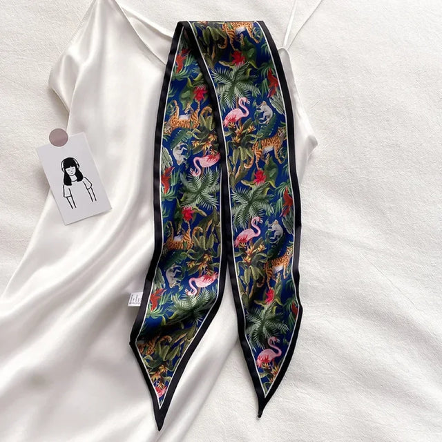 Leopard Flamingo Print Silk Long Scarf Women Luxury Hairband Narrow Scarves Small Neckerchief Summer Headband Ribbons Female - 13 / 9.5x100cm is backordered and will ship as soon as it is back in stock.