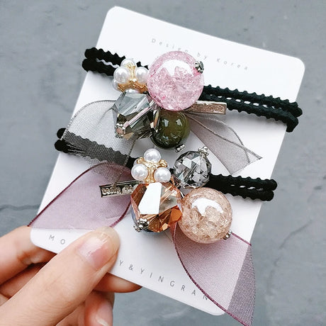 2Pcs/Set Braided Bows Hair Clips Ribbons Double Ponytails Cute Headwear Fashionable Hair Accessories