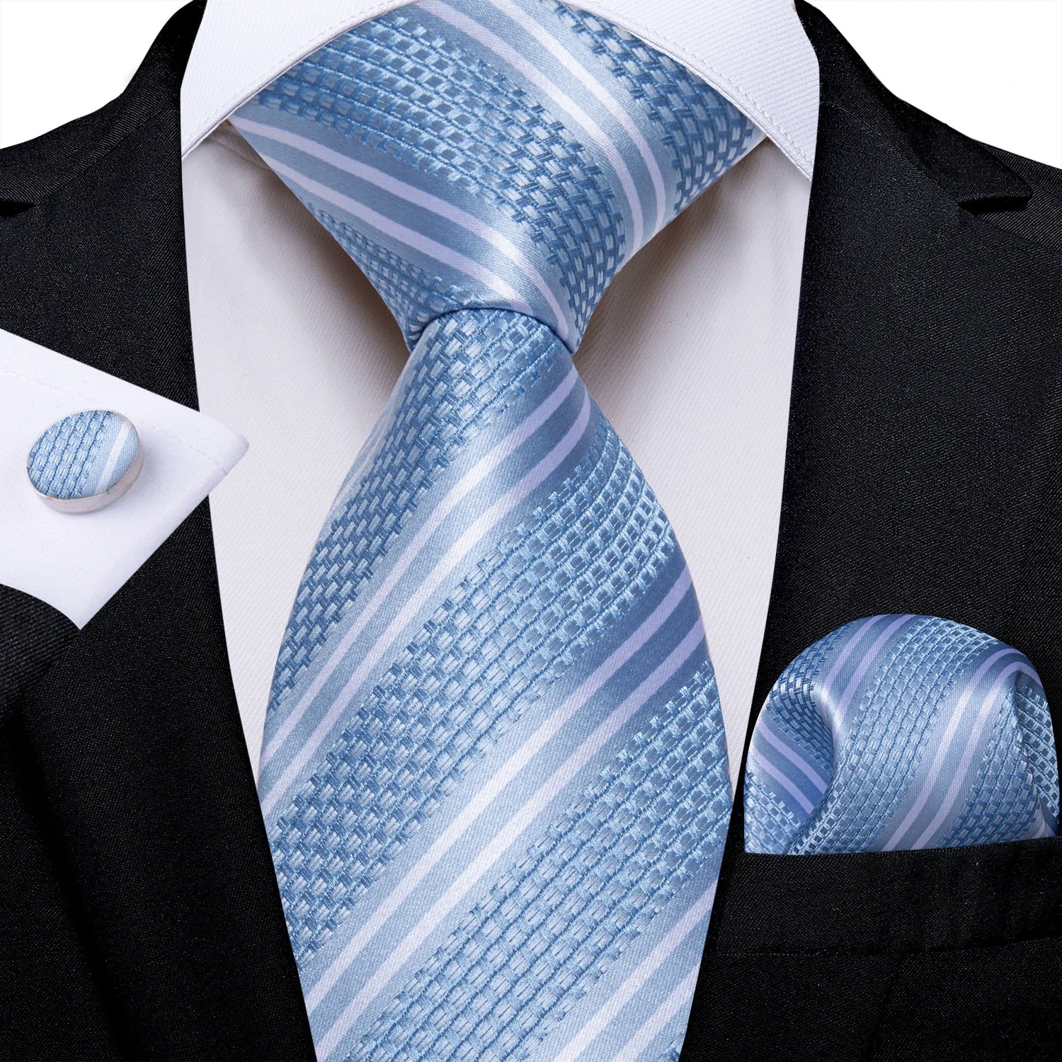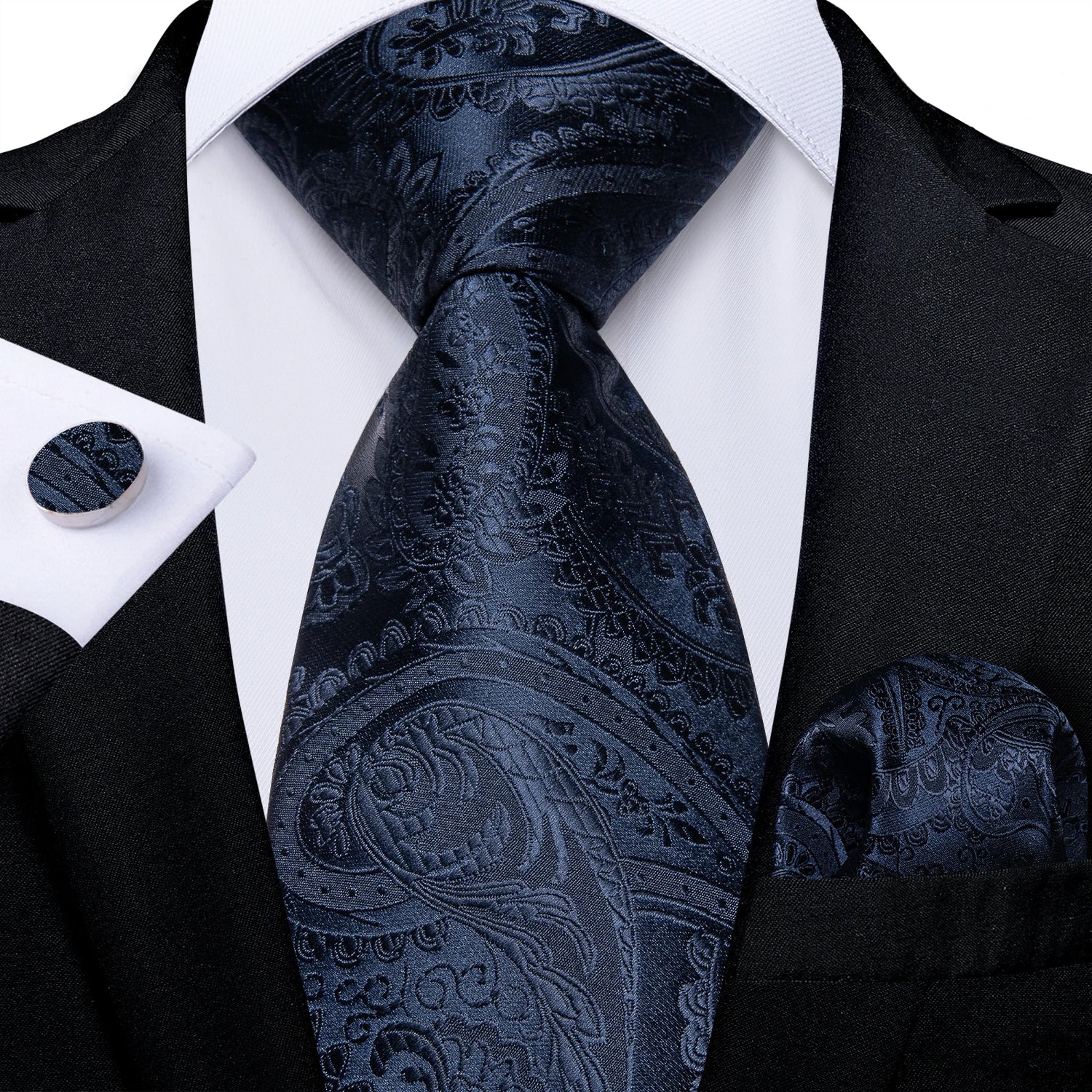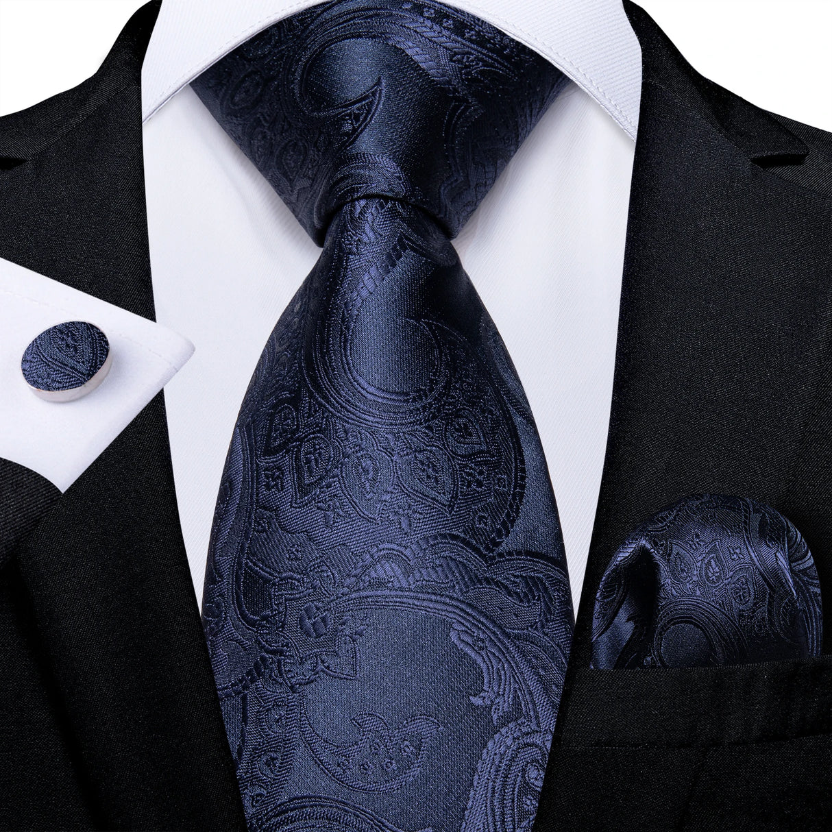 Elegant Blue Floral Paisley Men's 8cm Silk Tie Set with Pocket Square Cufflinks Business Suits Accessories Groom Wedding Cravat