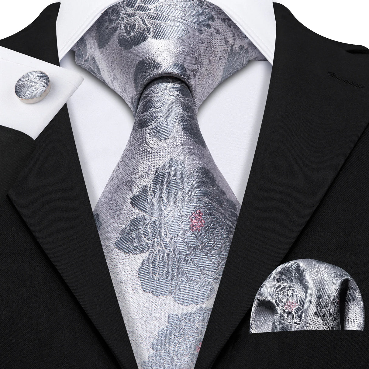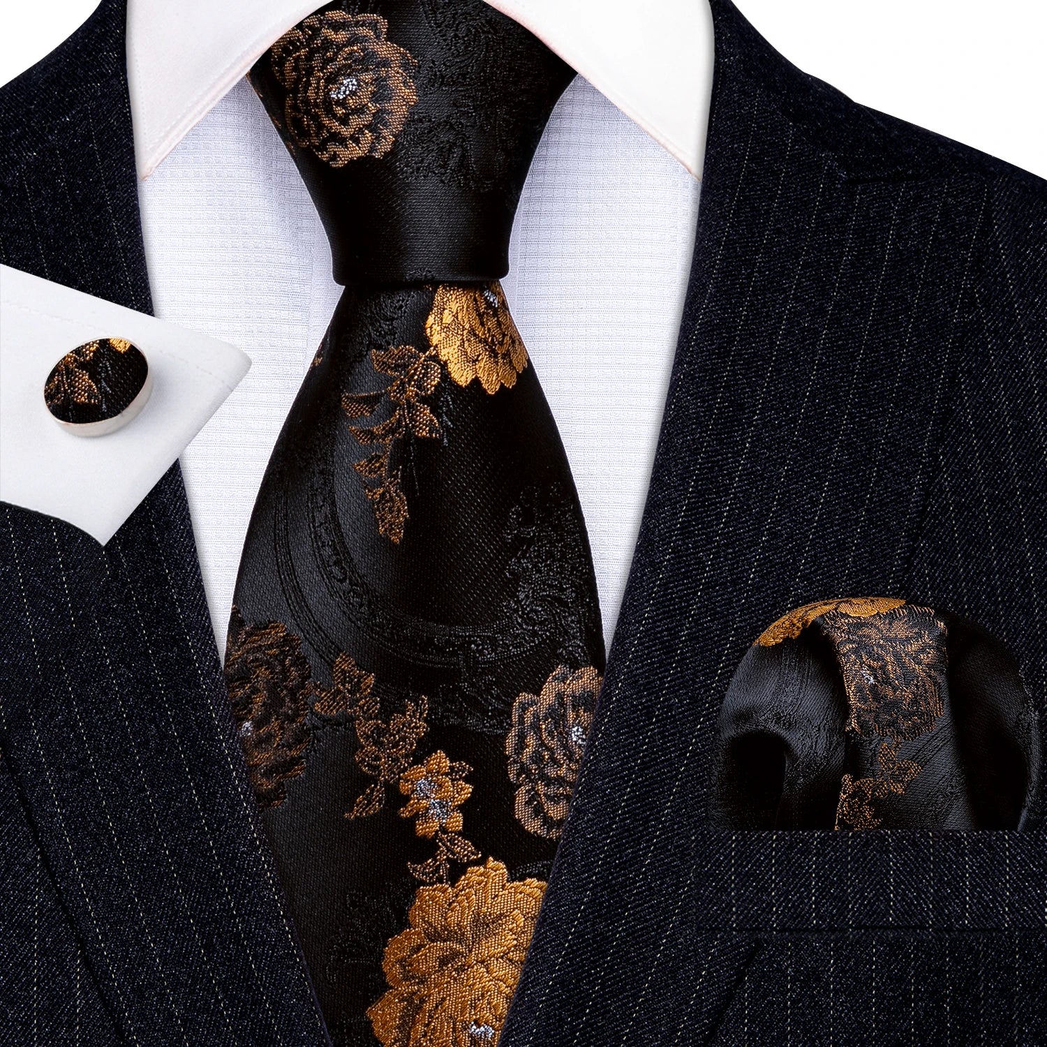 Elegant Multi Floral Silk Mens Tie Hanky Cufflinks Set Jacquard Flower Necktie For Male Wedding Business Party Event Barry.Wang - N-0348 is backordered and will ship as soon as it is back in stock.