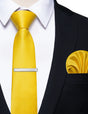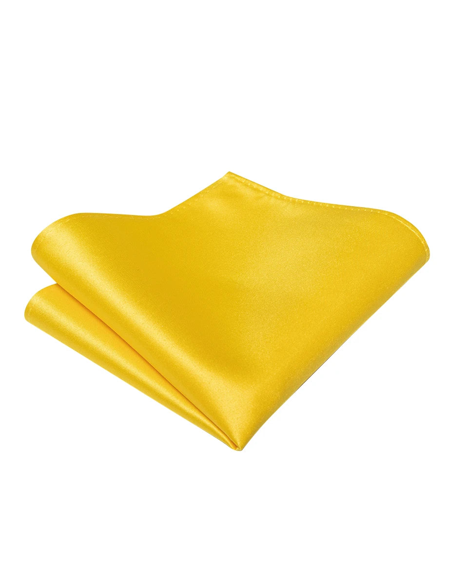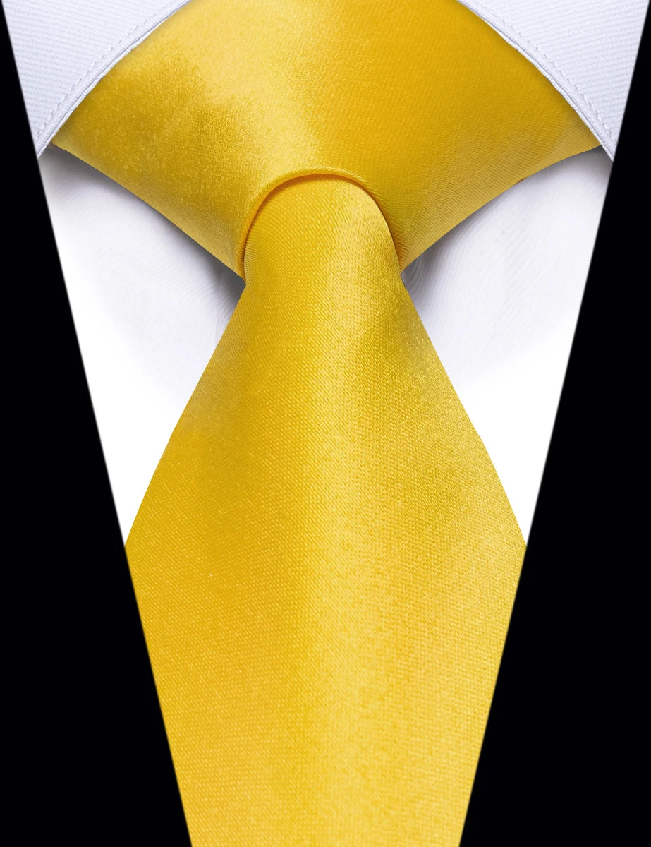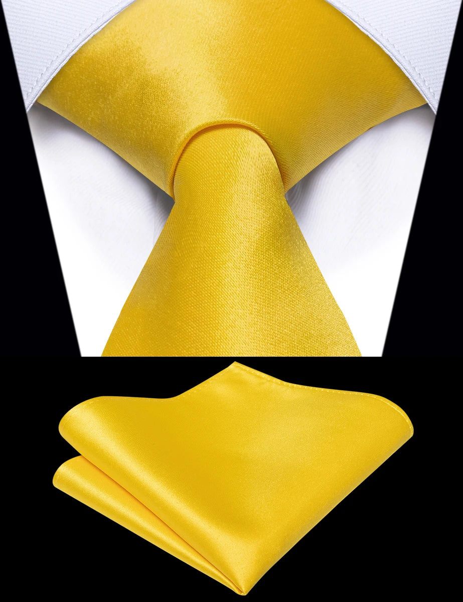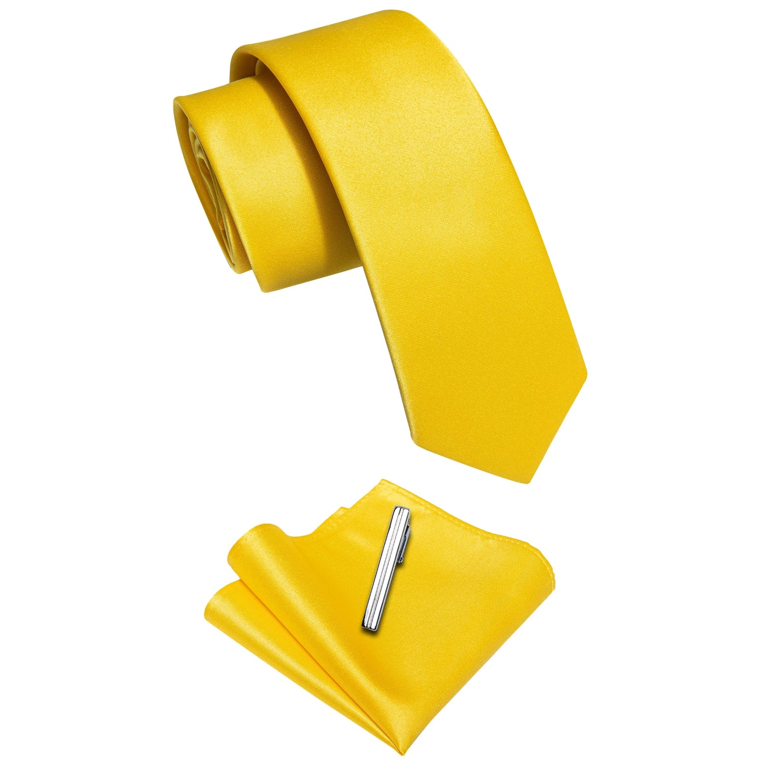 Fashion Bright Yellow Slim Tie for Man Wedding Daily Wearing Party Silk Luxury Mens Solid Necktie Pocket Square Clip Dropshiping