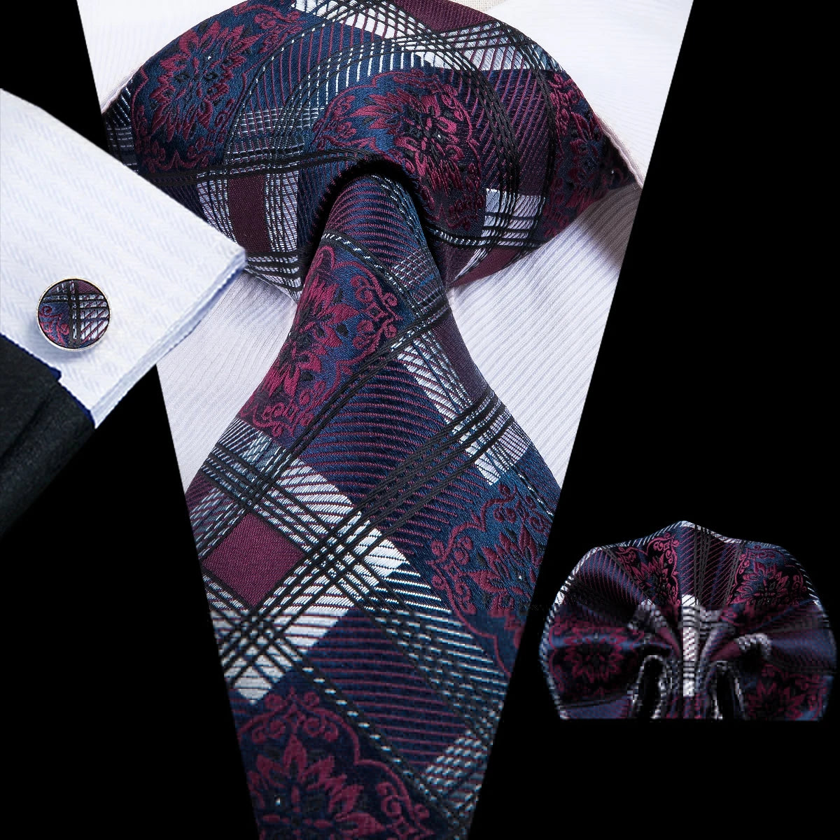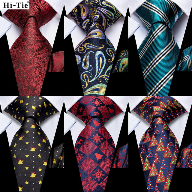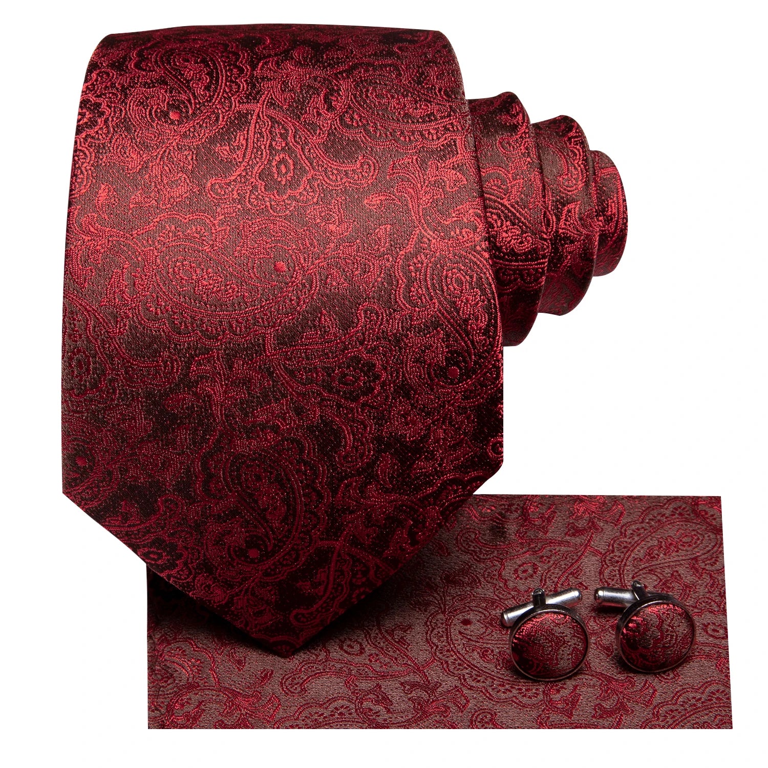 Hi-Tie Men Fashion Necktie Burgundy Paisley Handkerchief Cufflinks for Tuxedo Accessory Classic Silk Luxury Gift Tie for Men