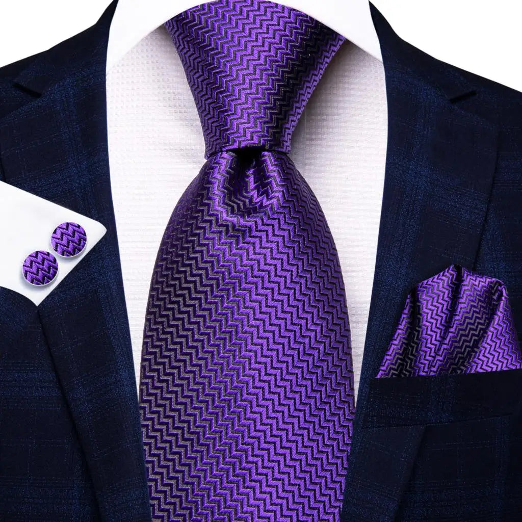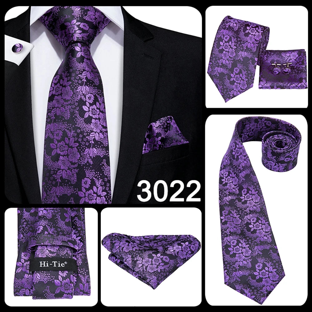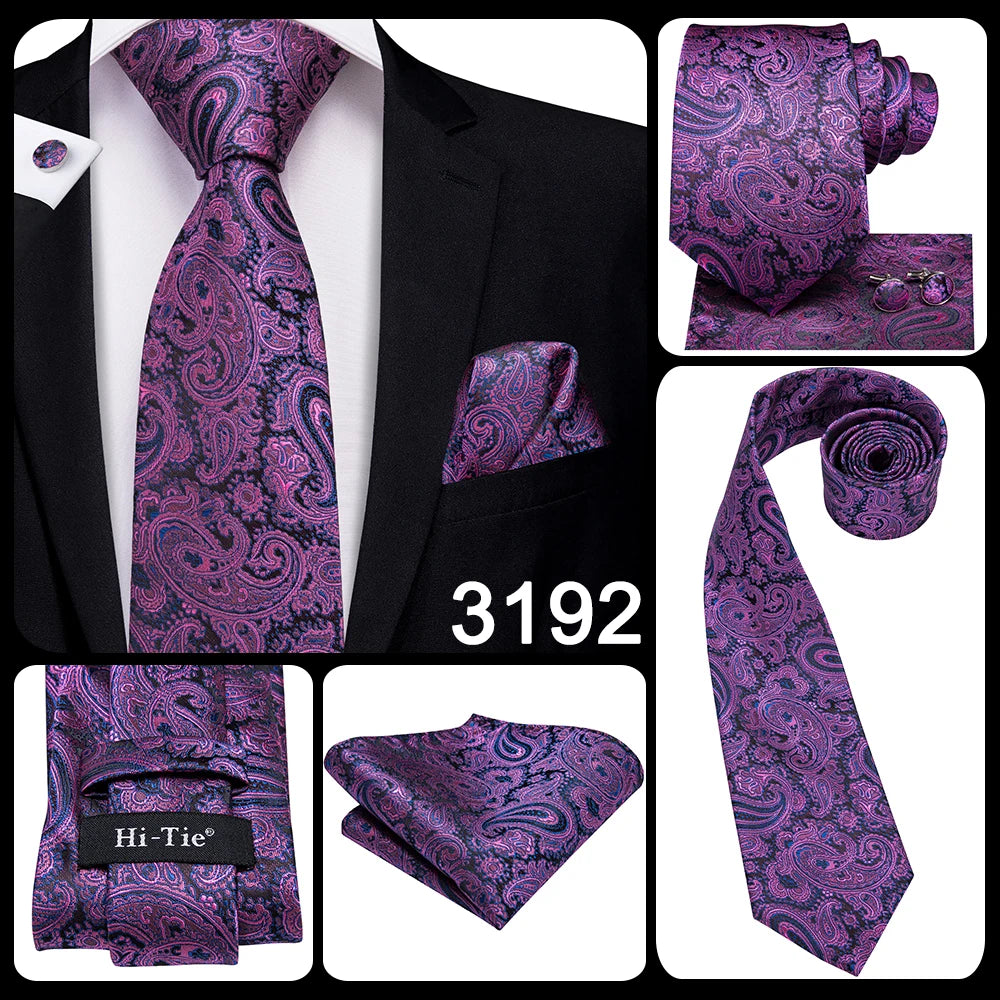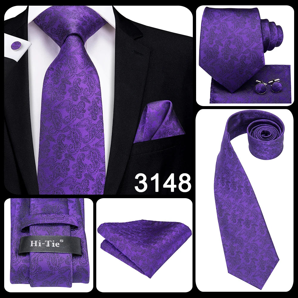 Hi-Tie Purple Solid Paisley Silk Wedding Tie for Men Novelty Design Handky cufflink Gift Men Tie Set Party Business Dropshipping - 3022 is backordered and will ship as soon as it is back in stock.