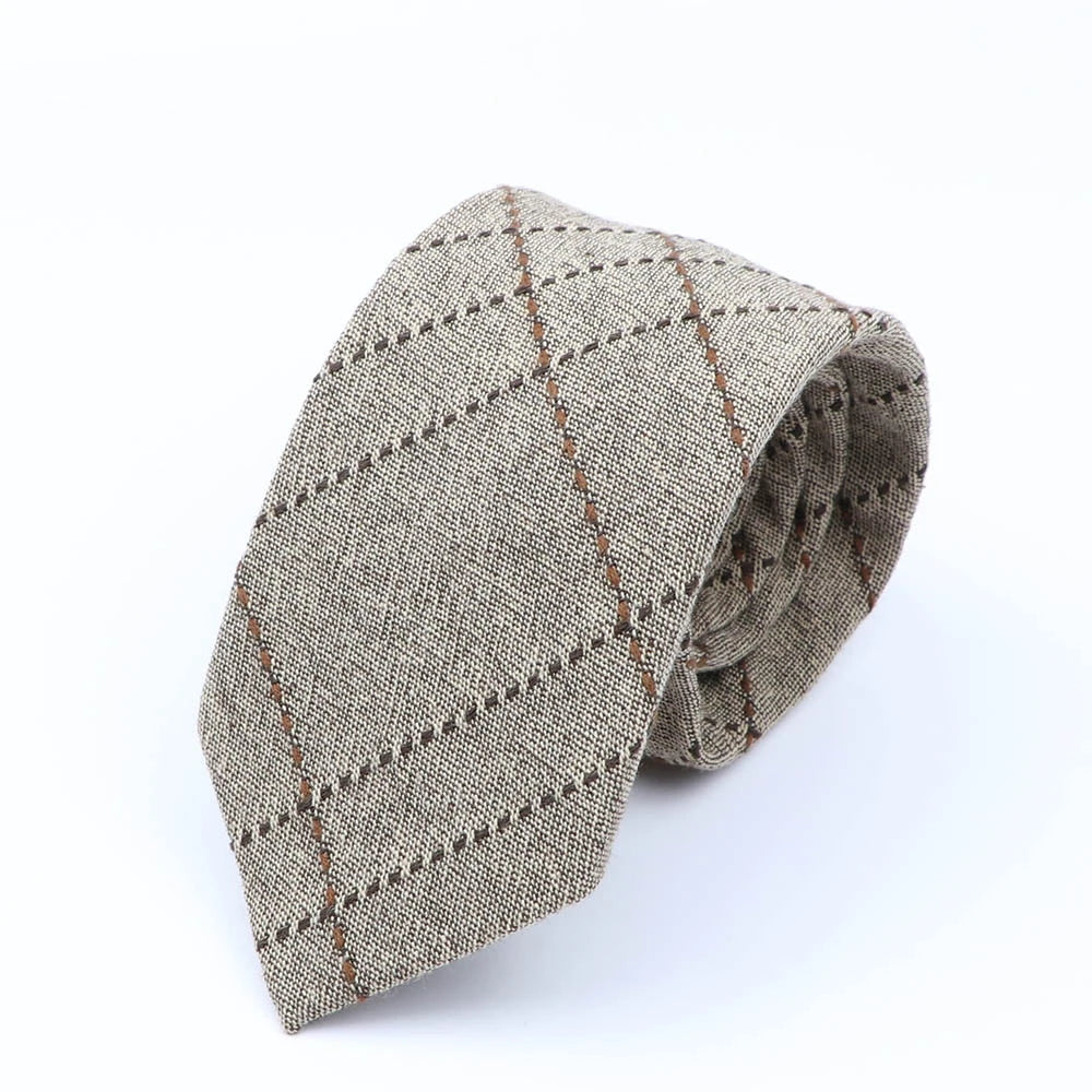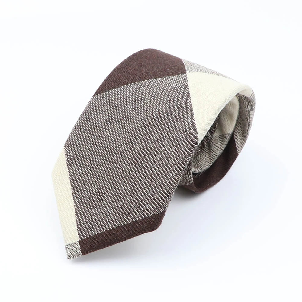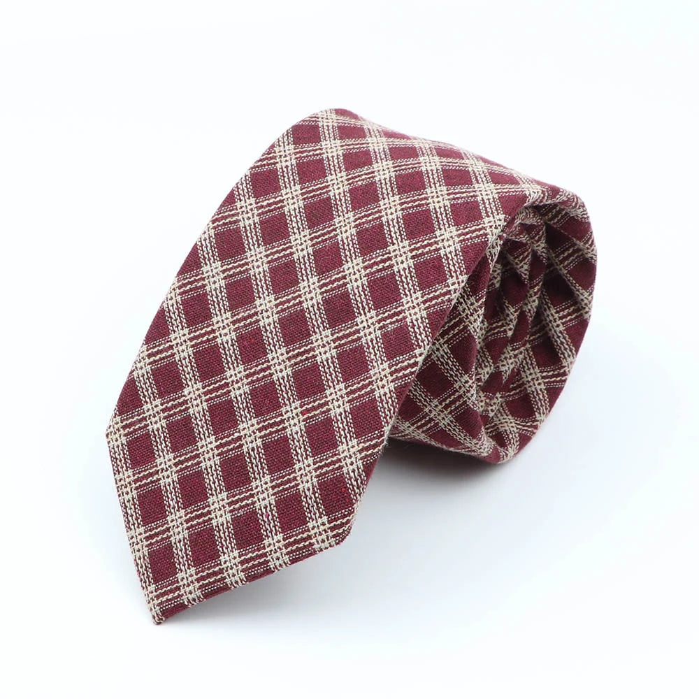 High Quality Mens 7cm Ties Classic Brown Red Striped Plaid Cotton Handmade Necktie Narrow Skinny Cravat Casual Tie Accessories