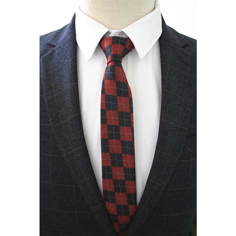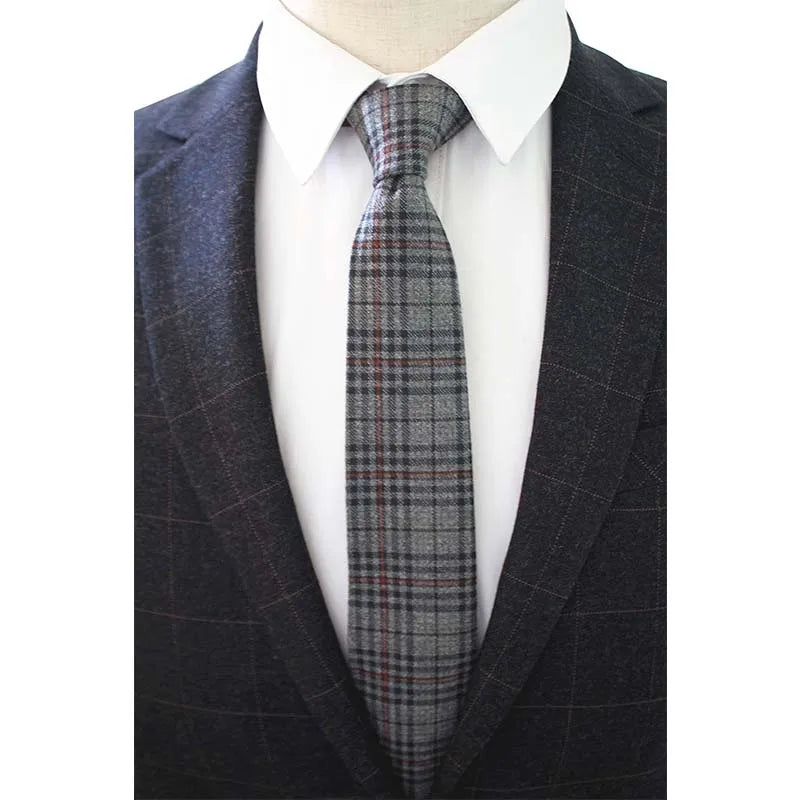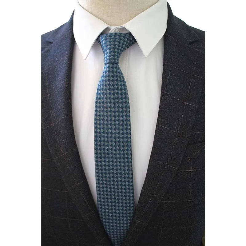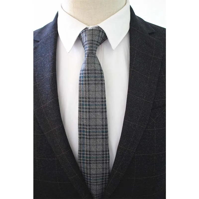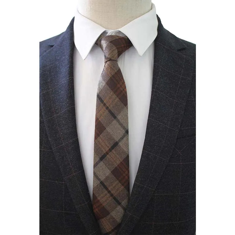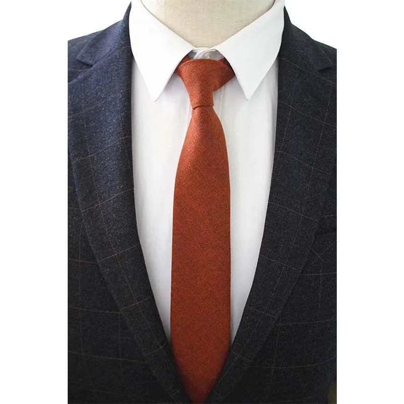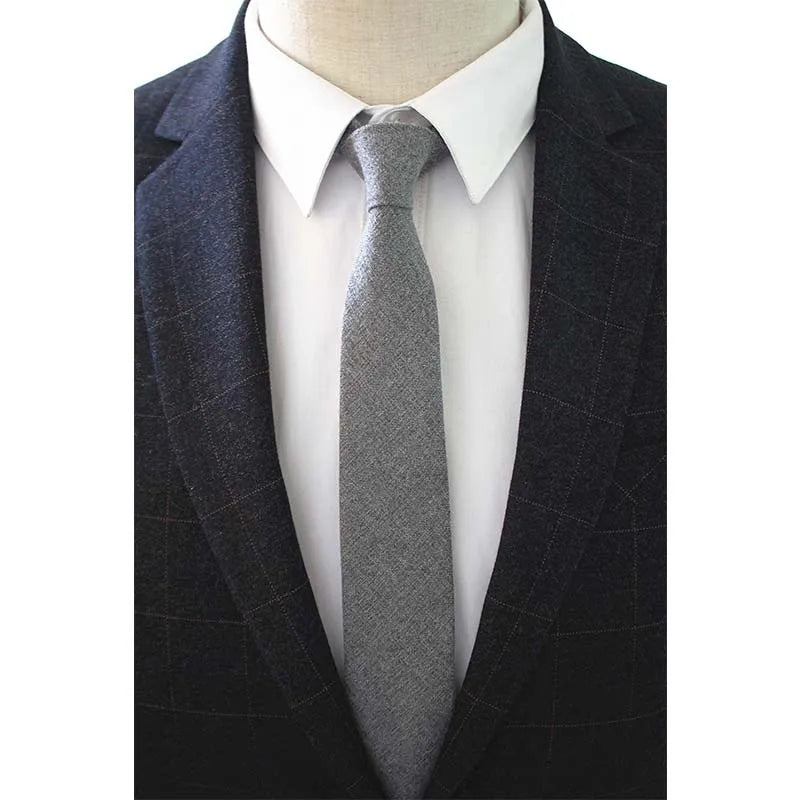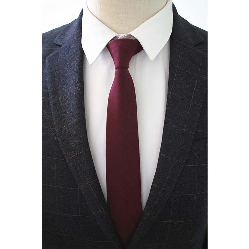 JEMYGINS Original High Quality Cotton 2.4'' Skinny Plaid Solid Cashmere Tie Wool Men Neck Tie For Youth Working Meeting
