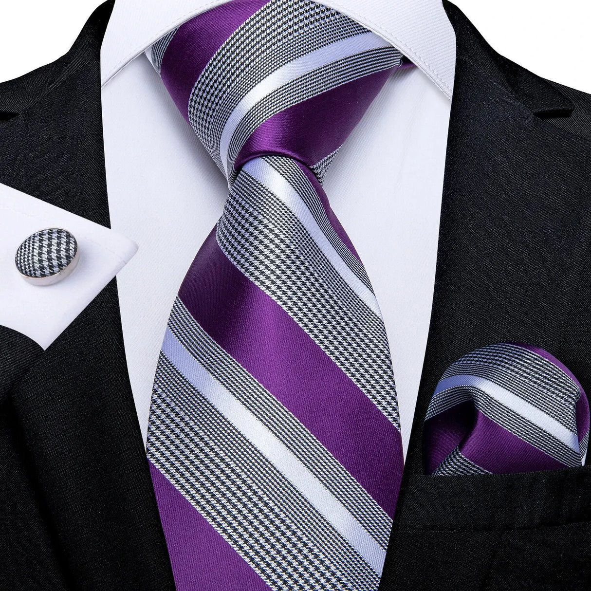 Luxury Blue Striped Polyester Ties for Men 8cm Width Wedding Business Prom Necktie Pocket Square Cufflinks Gift Men Accessories - DG-N-7410 is backordered and will ship as soon as it is back in stock.