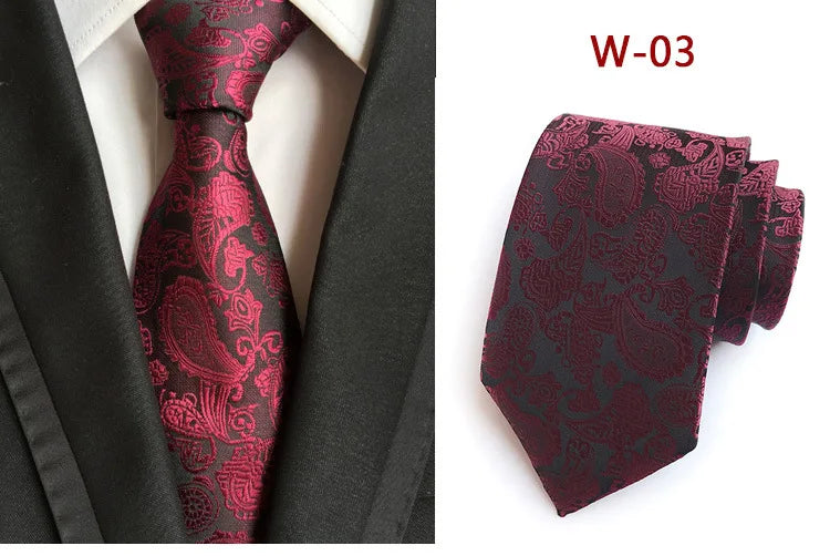 New Striped Silk Tie 8cm Luxury Paisley Necktie Red Bule Purple Polyester Neck Tie For Men Formal Business Wedding Party Ties - W-08 is backordered and will ship as soon as it is back in stock.