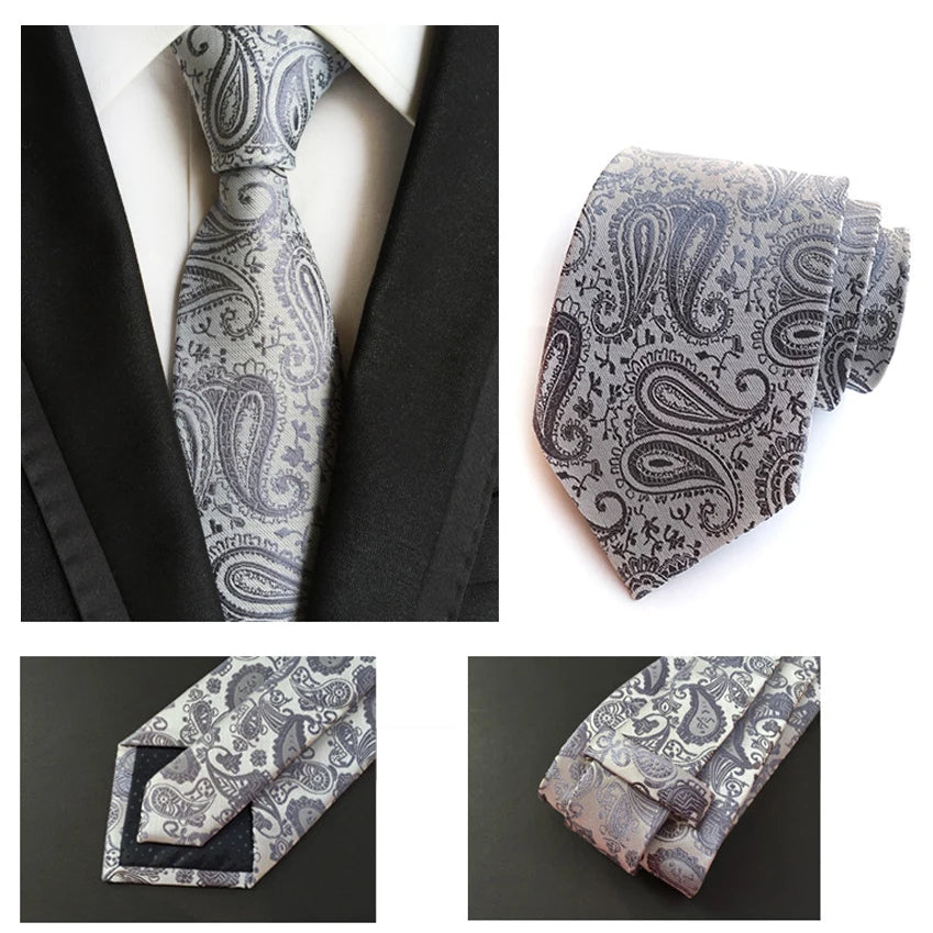 New Striped Silk Tie 8cm Luxury Paisley Necktie Red Bule Purple Polyester Neck Tie For Men Formal Business Wedding Party Ties