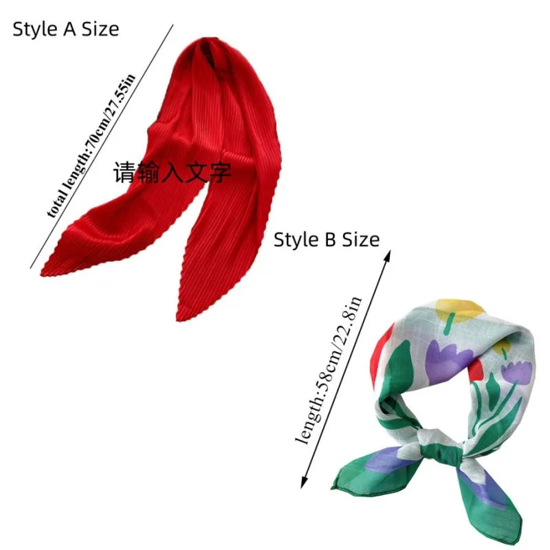 Women Soft Silk Pleated Scarf Luxury Solid Color Neck Scarfs Foulard Femme Crinkle Hair Band Scarves Girl Neckerchief