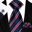 3Pcs Striped Ties Set Necktie and Pocket Square Cufflinks Sets Trendy Repp Graphic Woven Formal Business Necktie for Men - Blue is backordered and will ship as soon as it is back in stock.