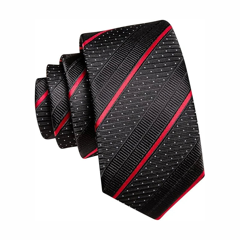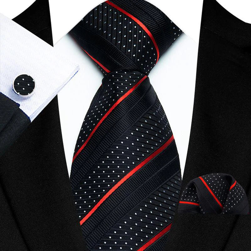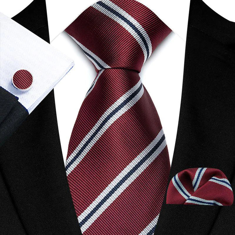 3Pcs Striped Ties Set Necktie and Pocket Square Cufflinks Sets Trendy Repp Graphic Woven Formal Business Necktie for Men