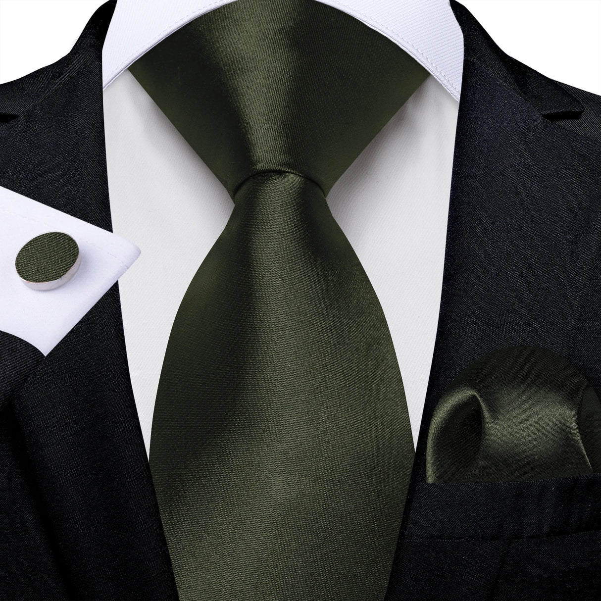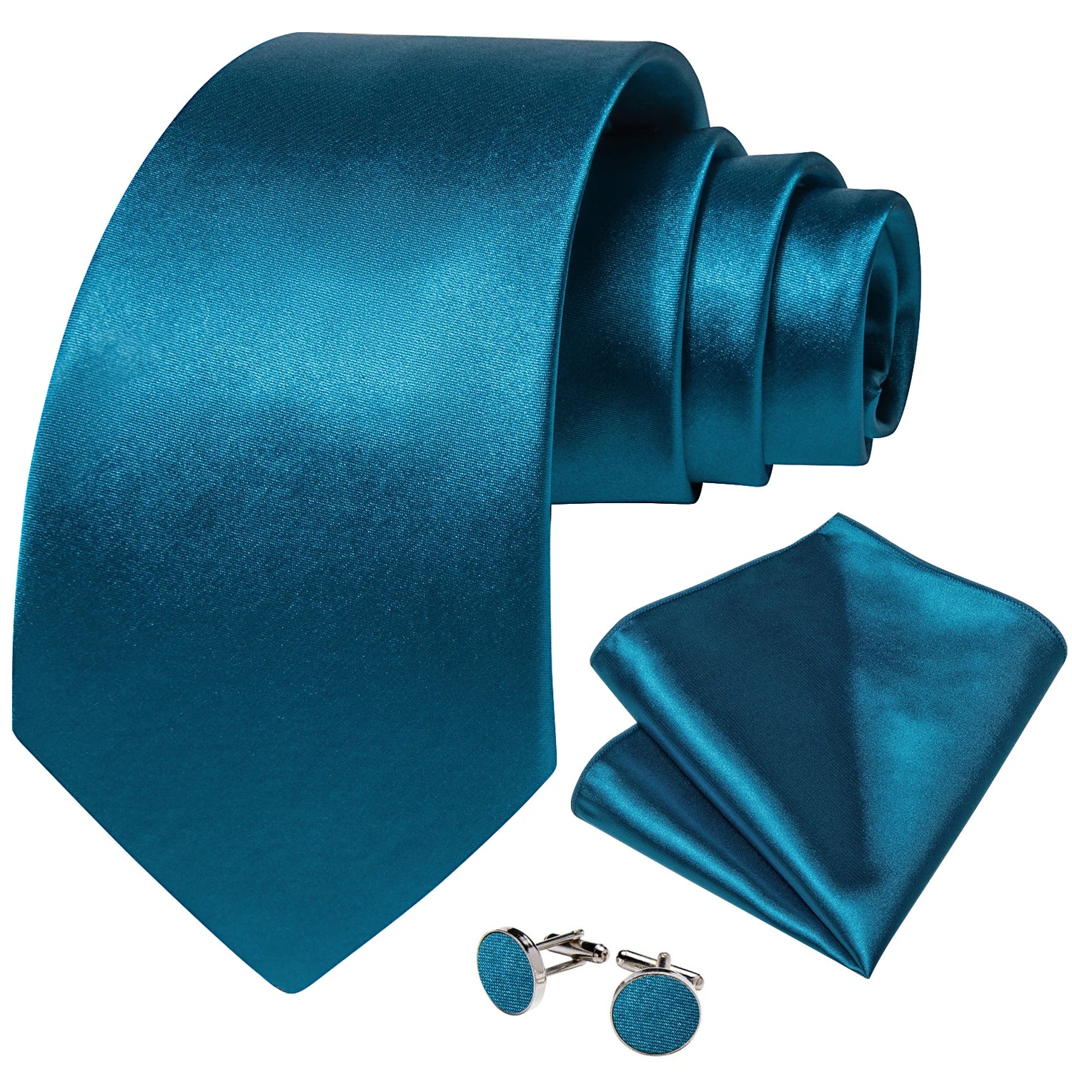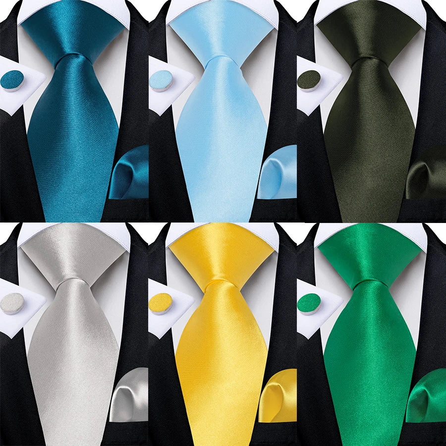 Men Solid Ties Blue Green Grey Business Wedding Party Accessory 8cm Necktie Handkerchief Cufflinks Husband Groom Gift Wholesale