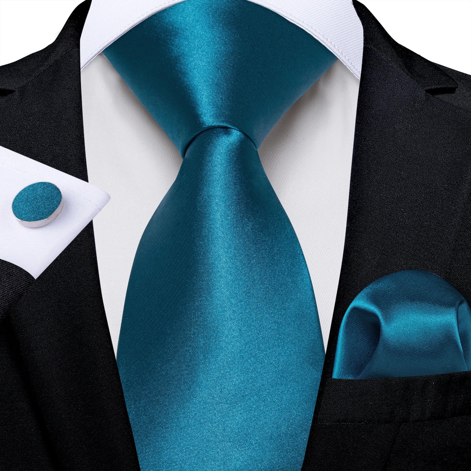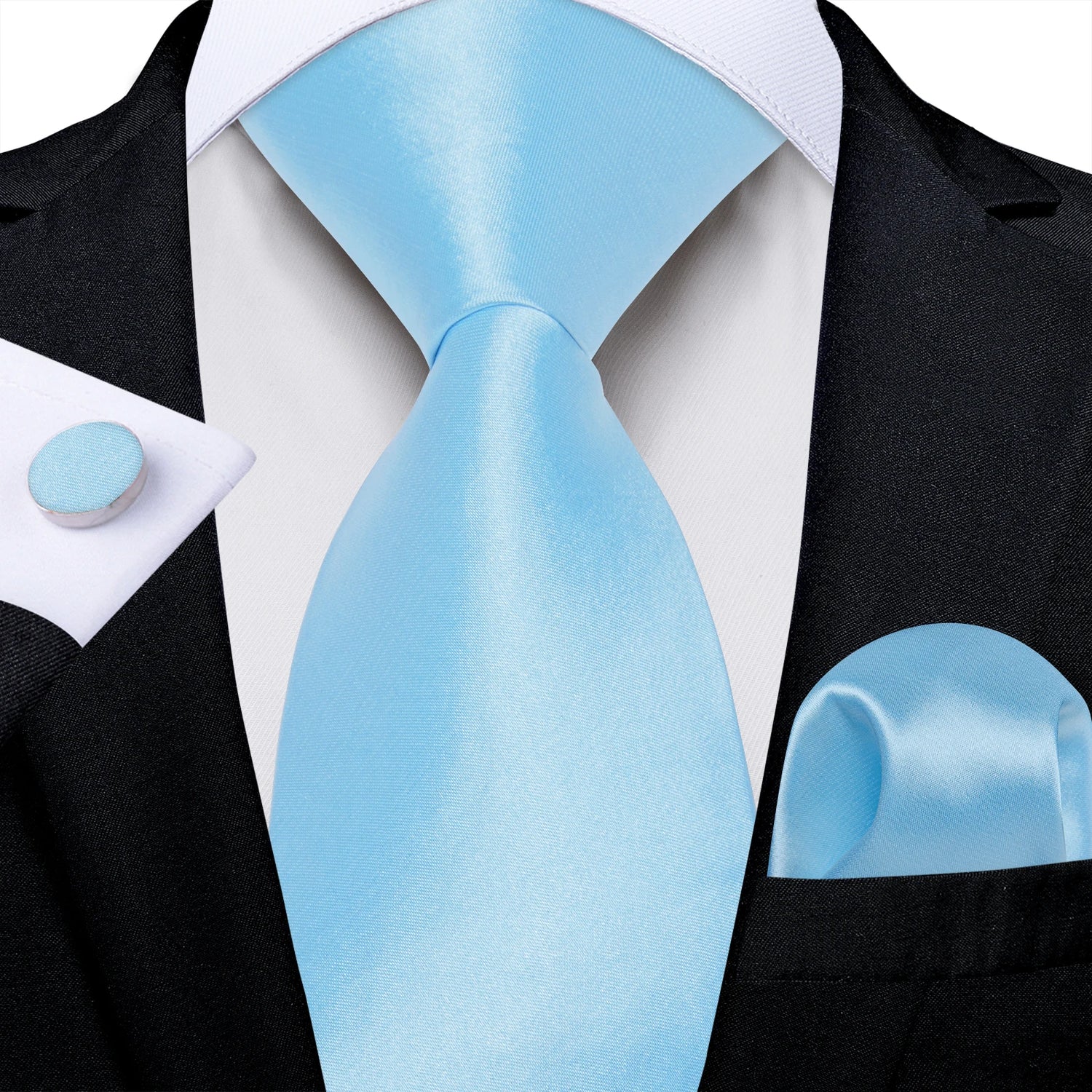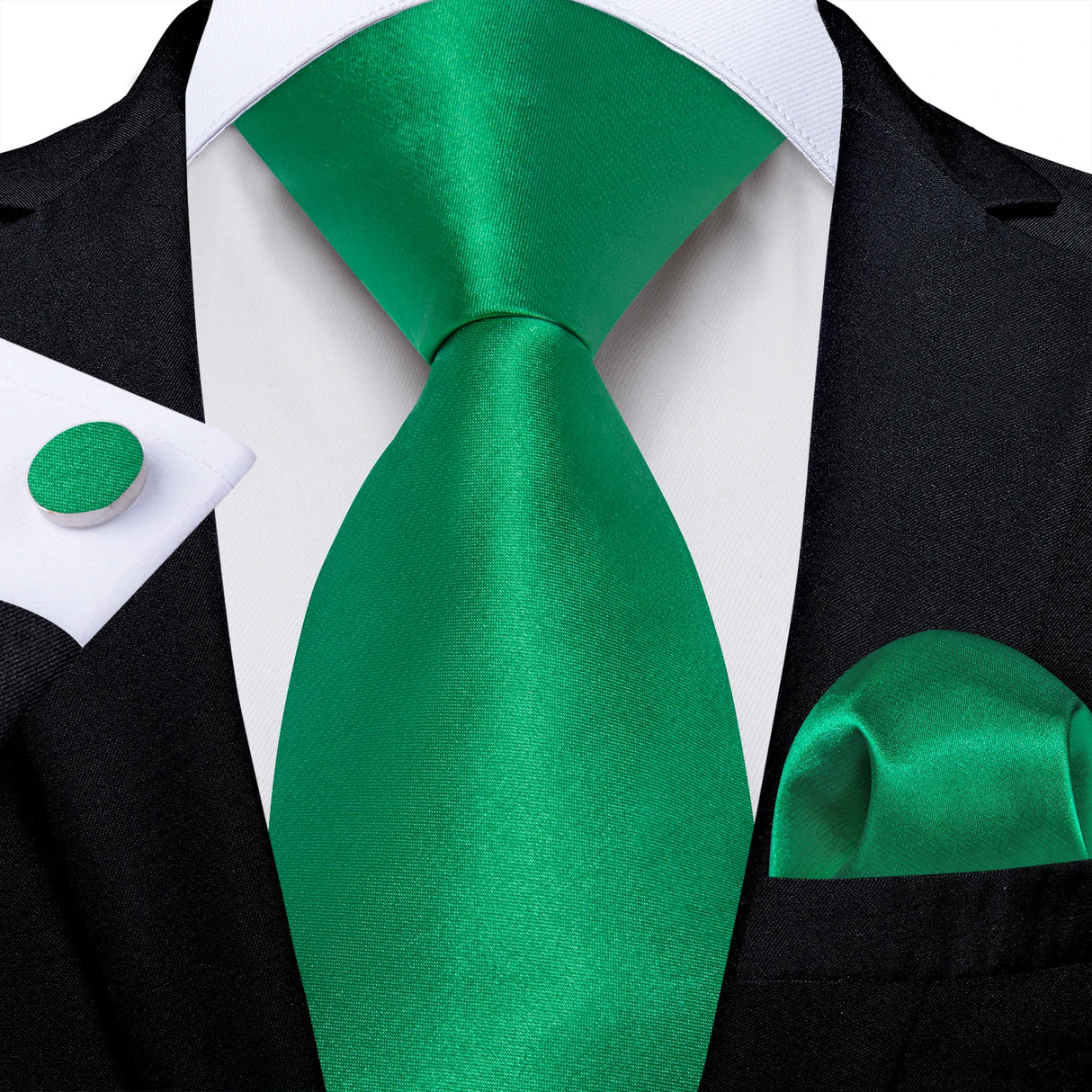 Men Solid Ties Blue Green Grey Business Wedding Party Accessory 8cm Necktie Handkerchief Cufflinks Husband Groom Gift Wholesale