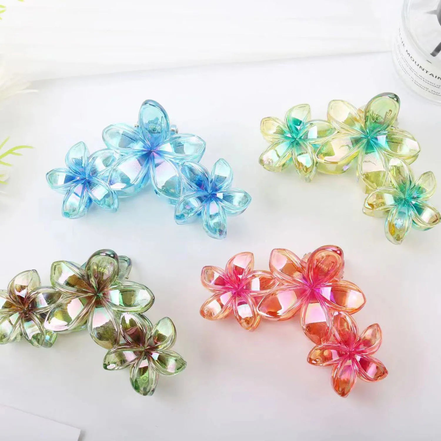 3 Head Plumeria Hair Clips Frangipani Flower Hair Claw Clip Trendy Crab Hair Claw Barrettes Hair Accessories For Girls