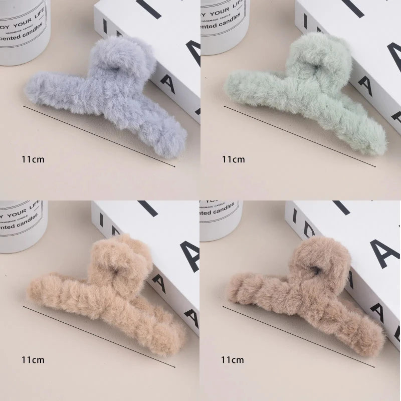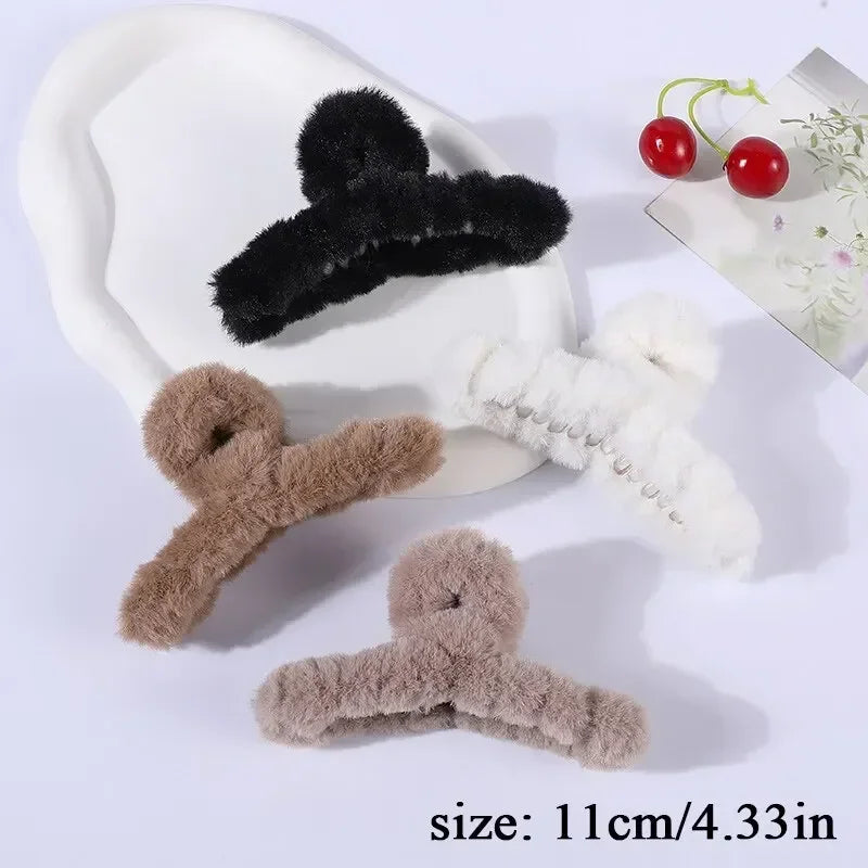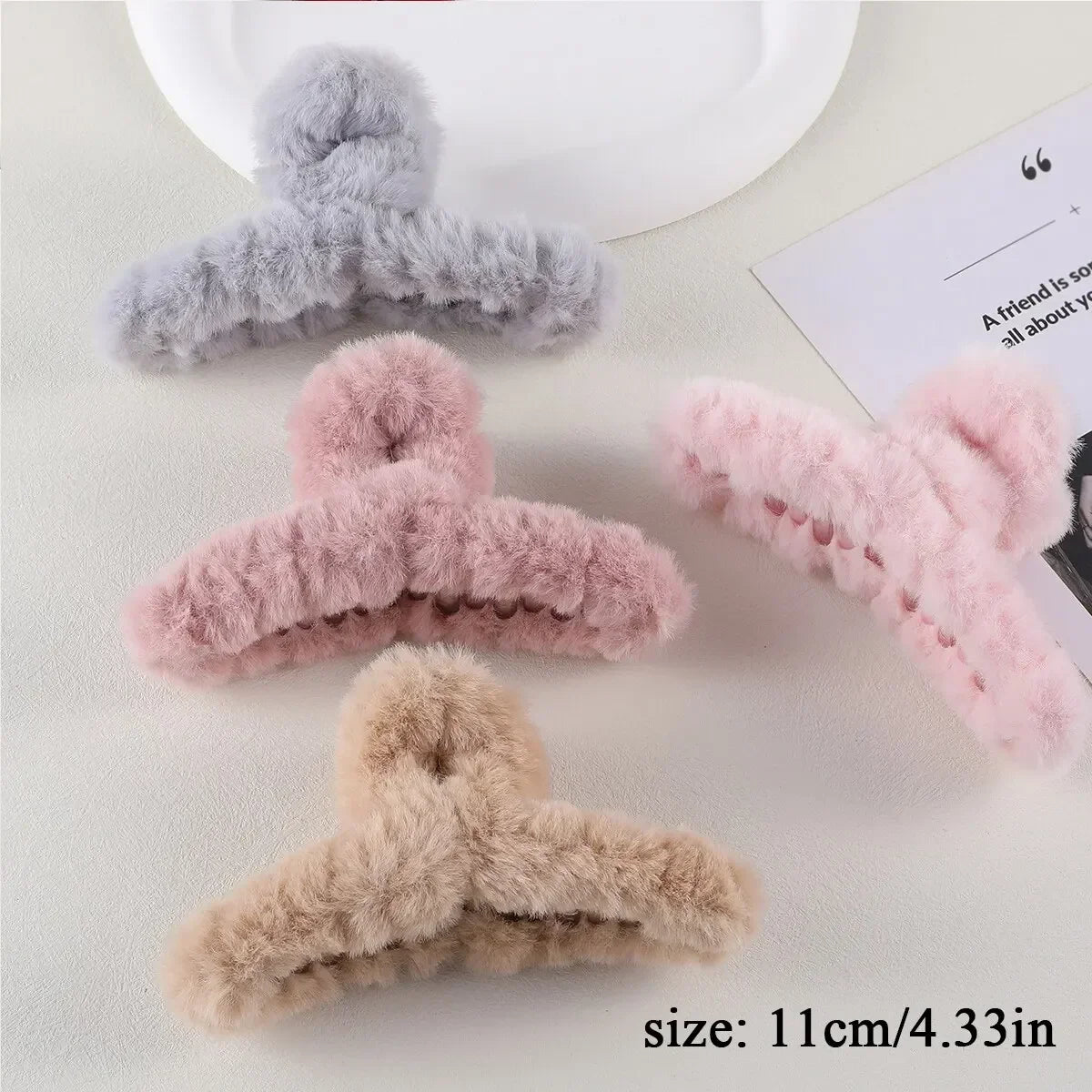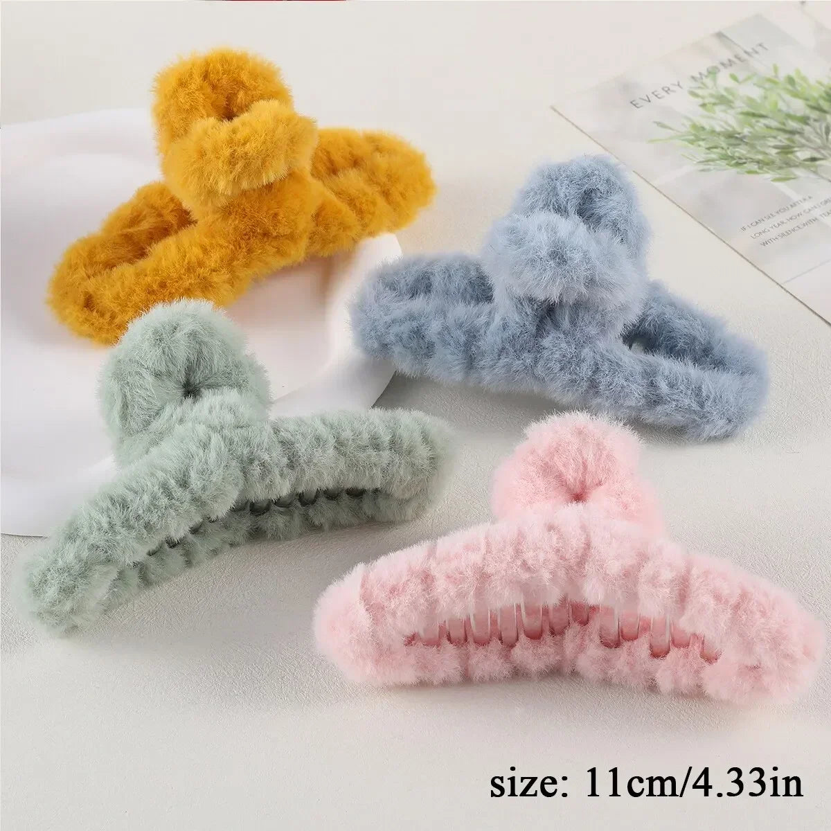 4Pcs/Set Plush Hair Claw Elegant Acrylic Hairpins Faux Fur Hair Clip Barrette Crab Headwear for Women Girls Hair Accessories