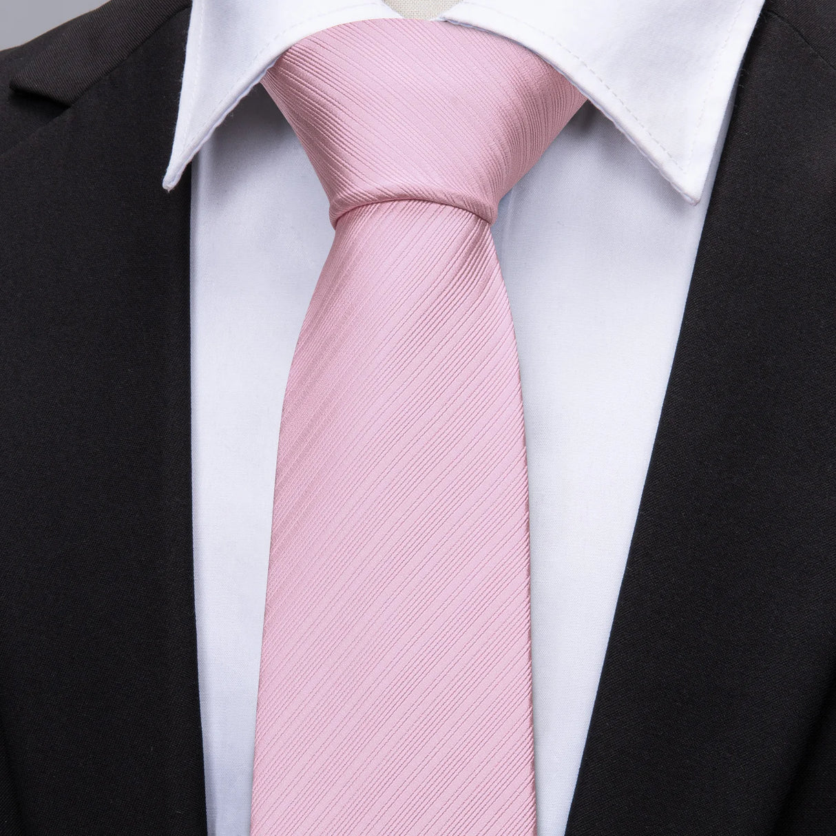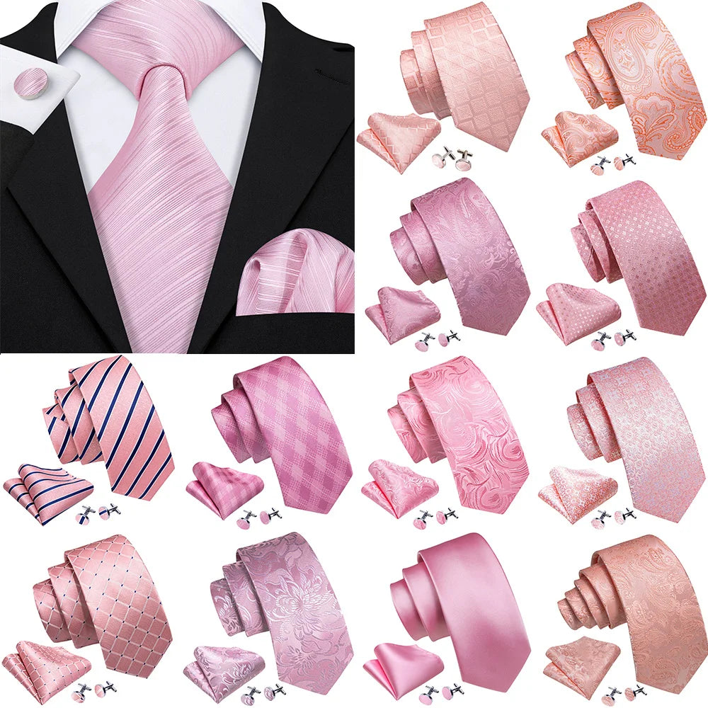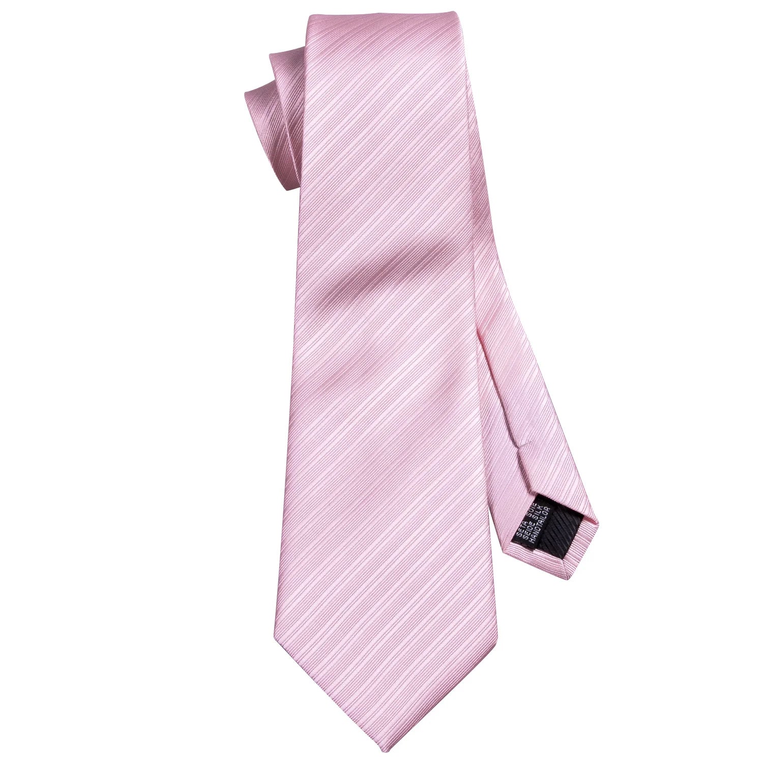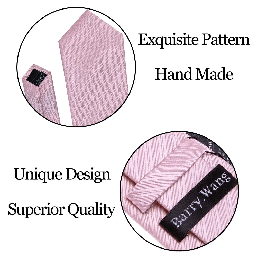 Elegant Pink Ties For Men Luxury Silk Stripe Pocket Square Cufflinks Set Fashion Male Necktie Groom Wedding Gift Barry.Wang 5090